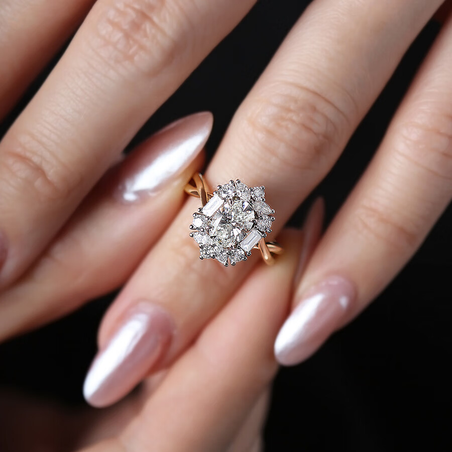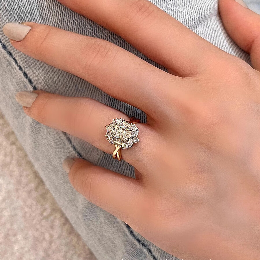 DidiZoo 18-cent gold electroplated oval 3 carat diamond ring for women dove egg luxury group set zircon live ring white gold & rose gold divided gold electroplating