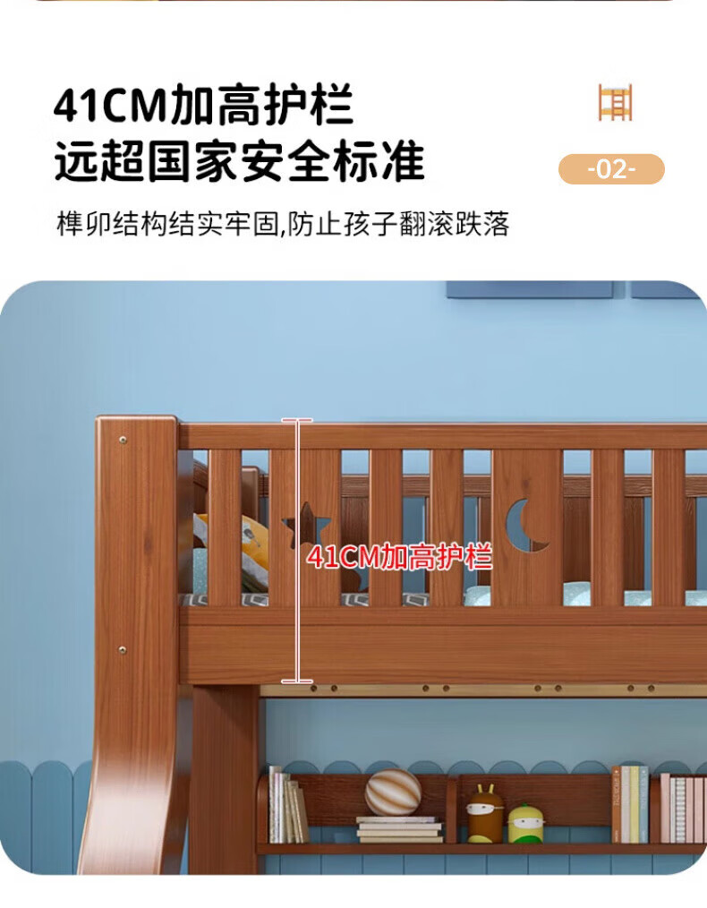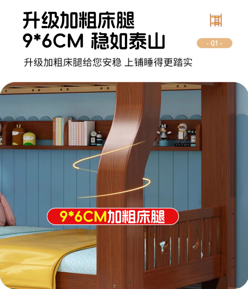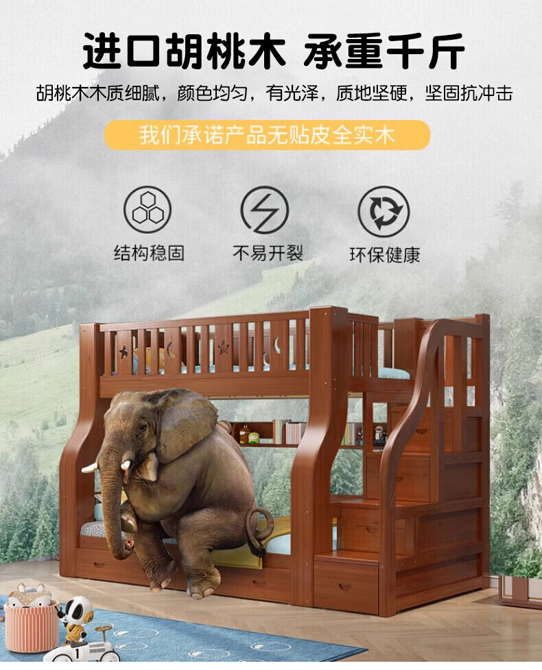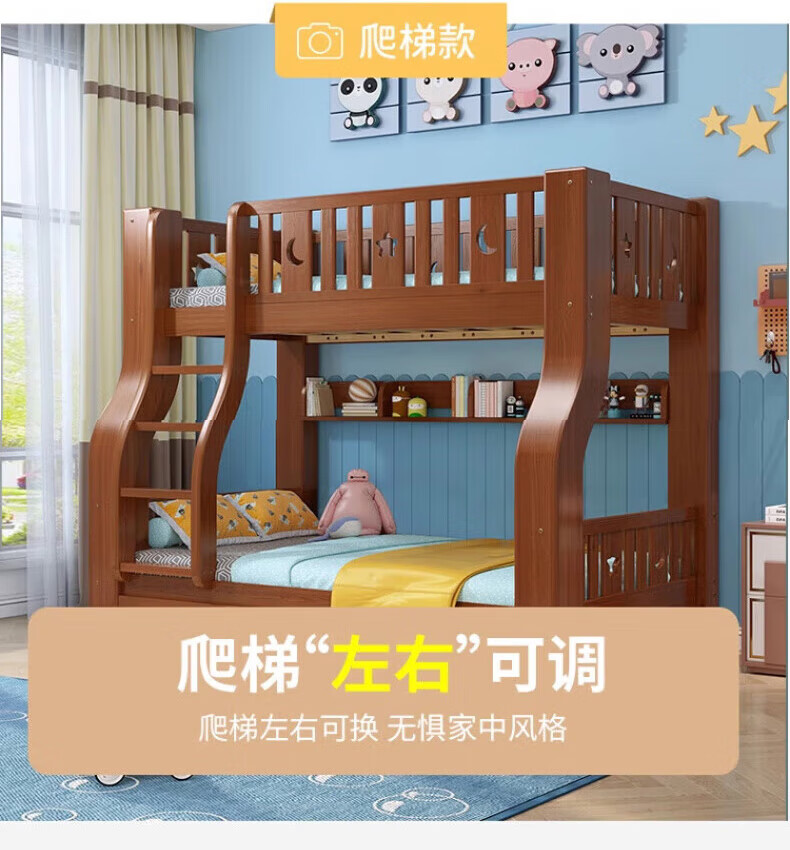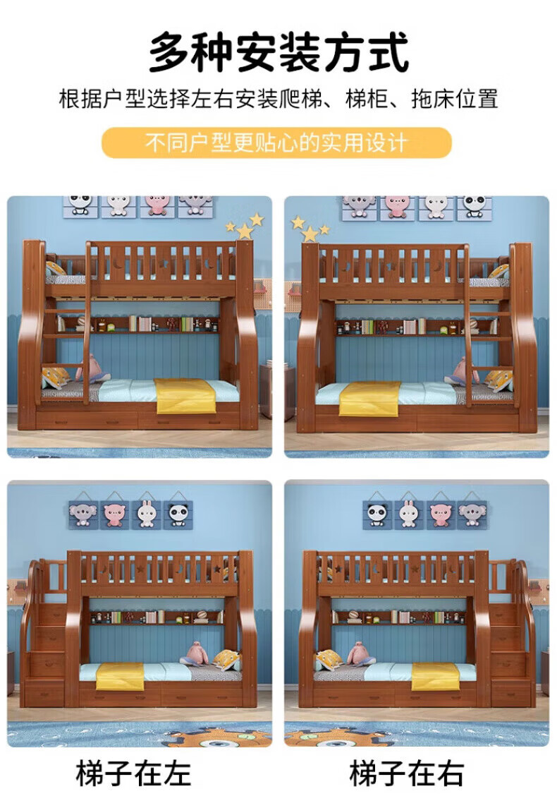 Chenyueju One-day fast delivery walnut wood upper and lower floors all solid wood children's bunk bed, high and low double-decker bunk bed, ladder cabinet type, upper bunk width 1.3 meters, bottom bunk width 1.5 meters