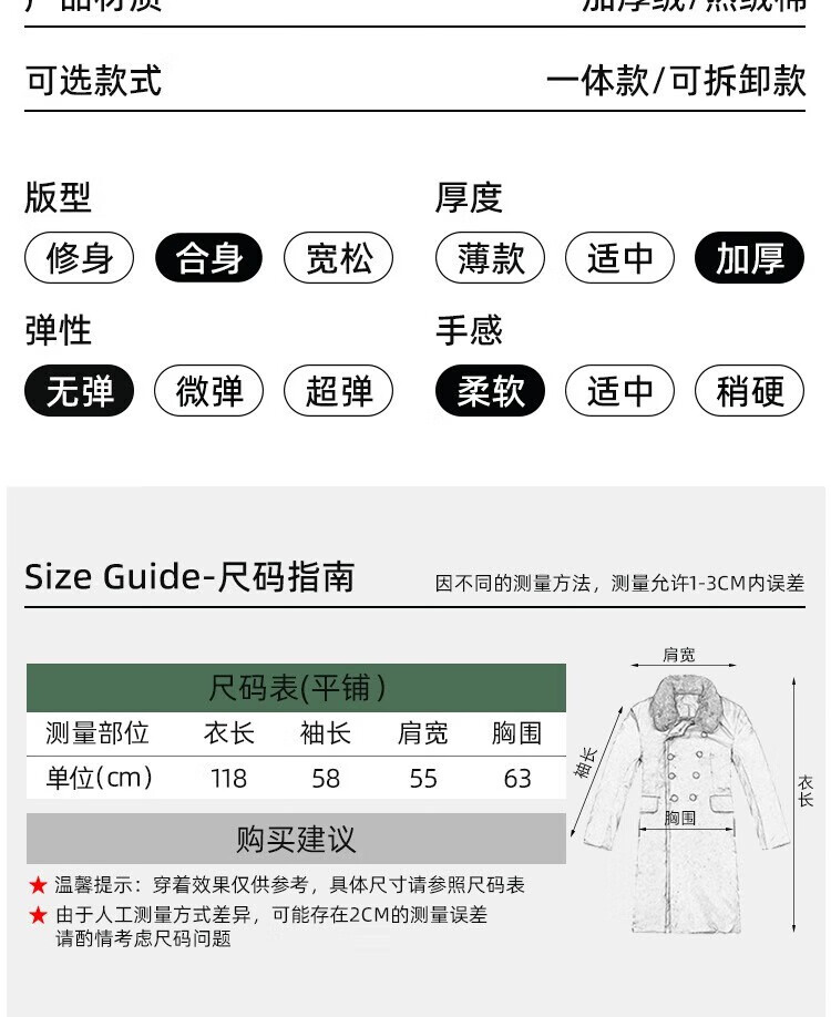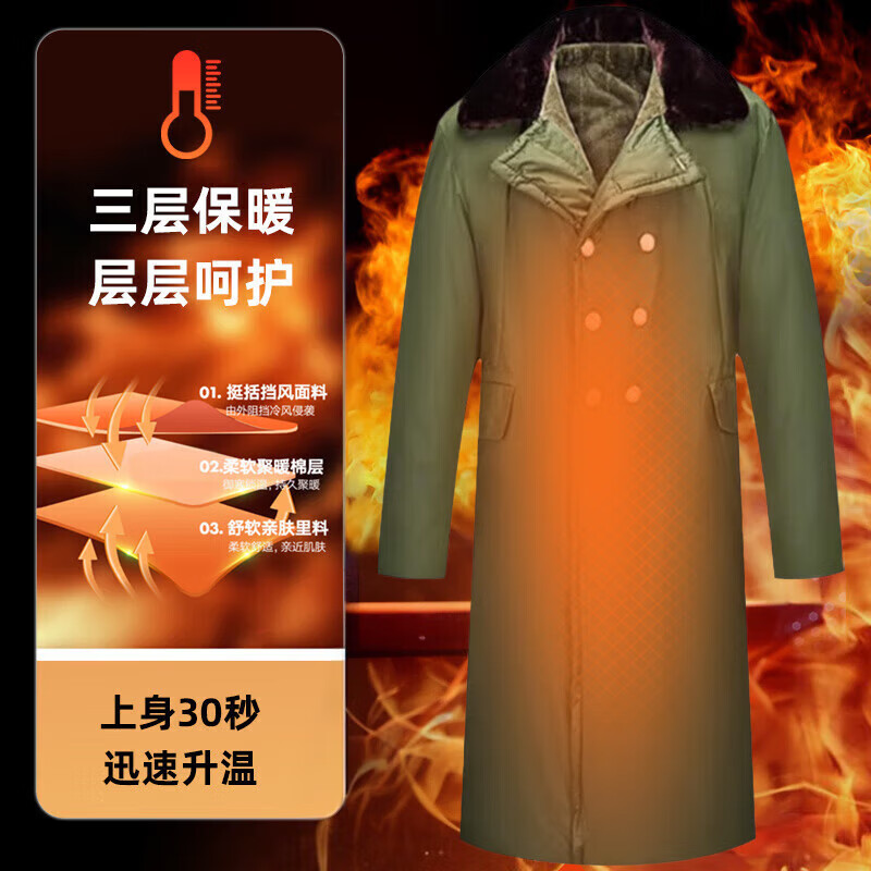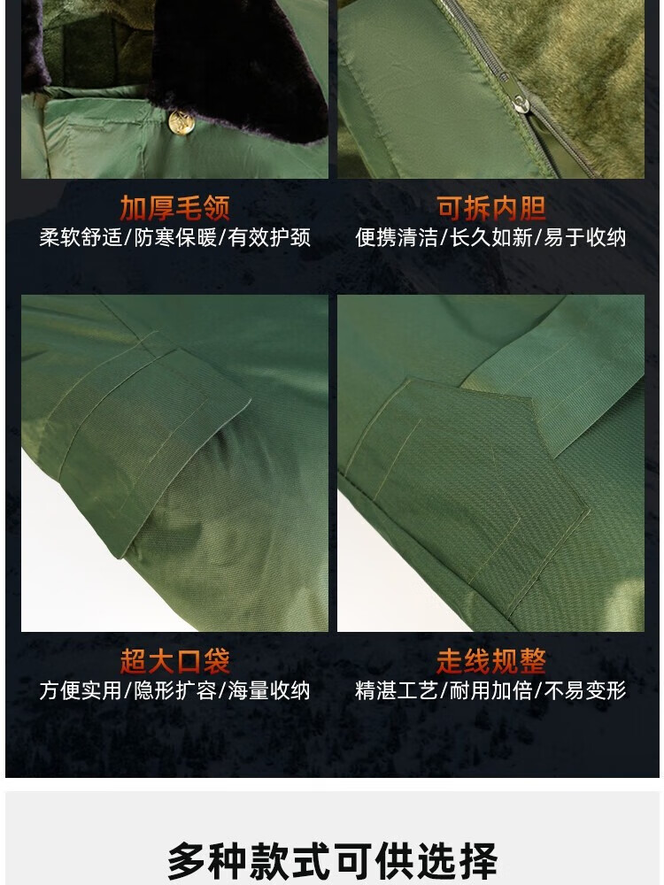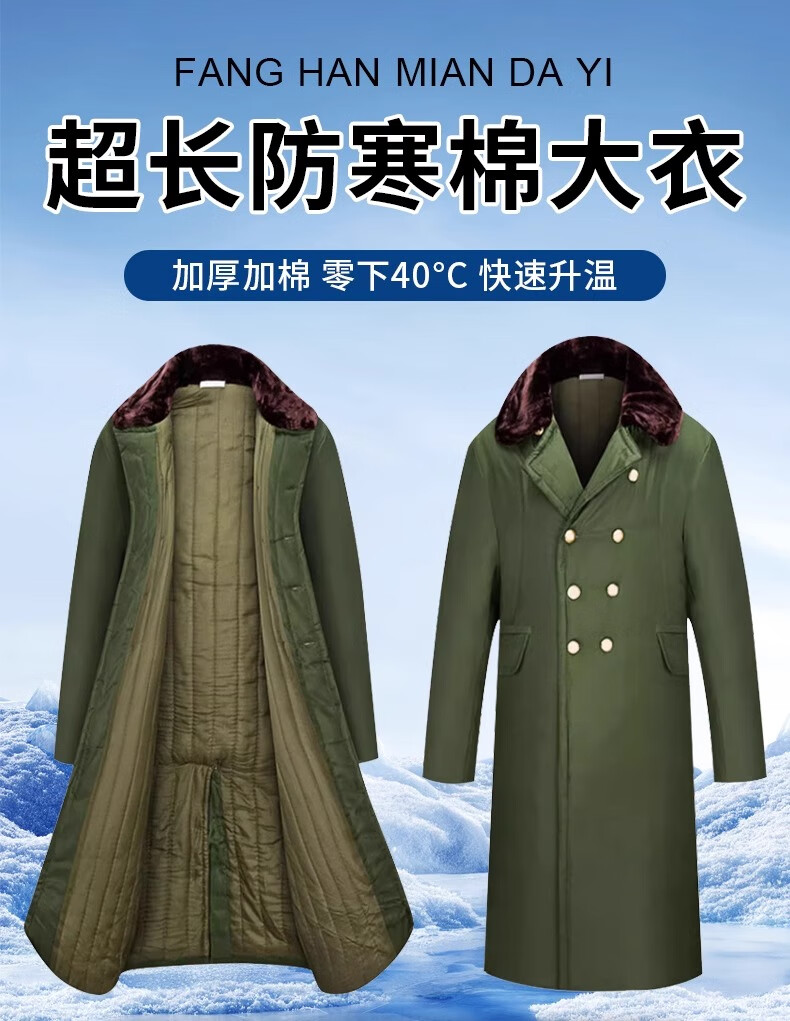 Jihua 3565 Military Coat Genuine Officer Uniform Winter Genuine Thickened Long Over-the-Knee Windproof and Coldproof Warm Cotton Coat for Men Army Green Coat-Fleece Non-Removable Liner One Size