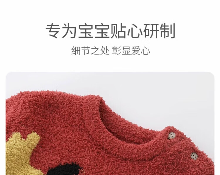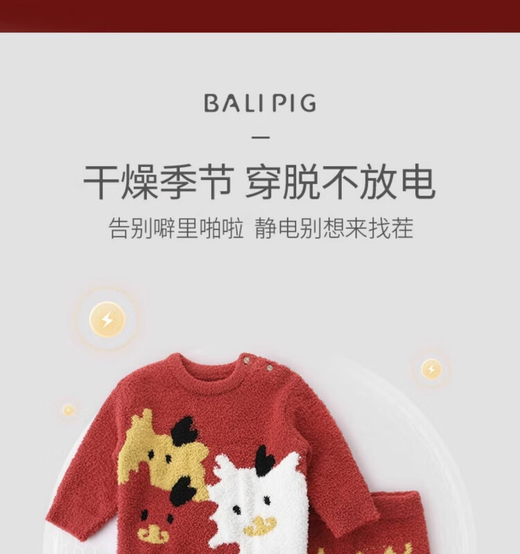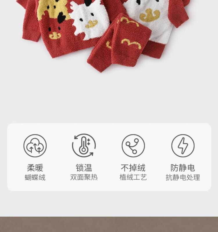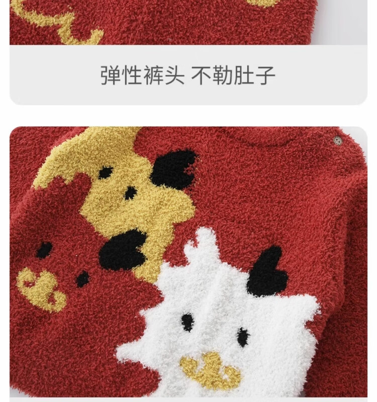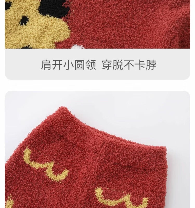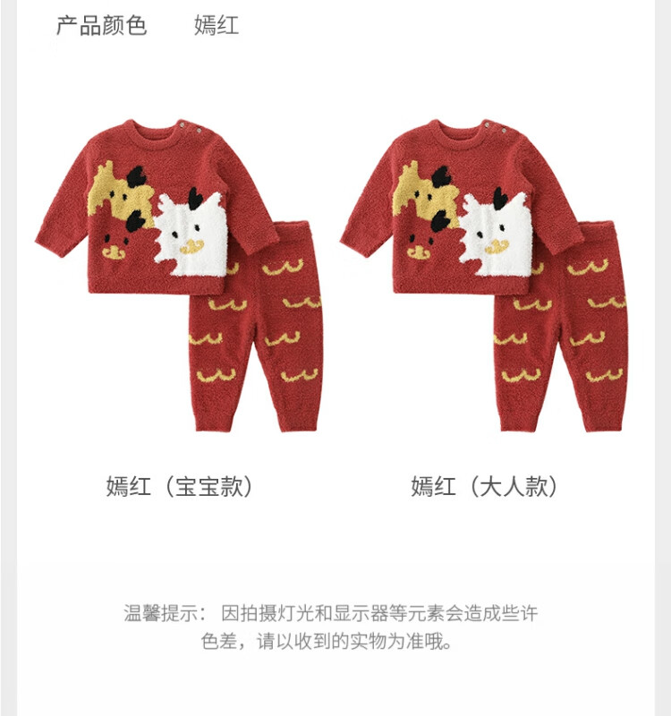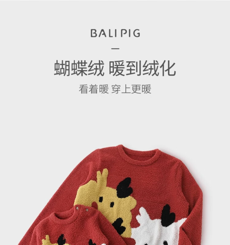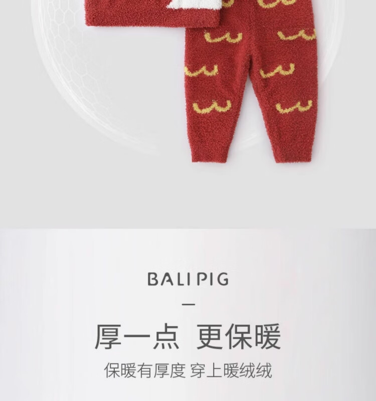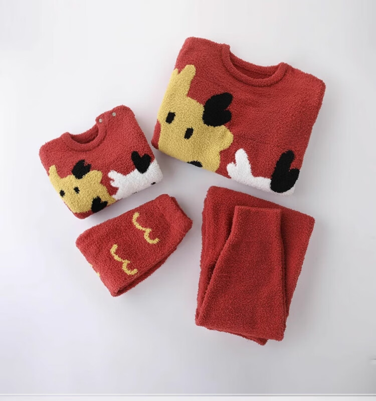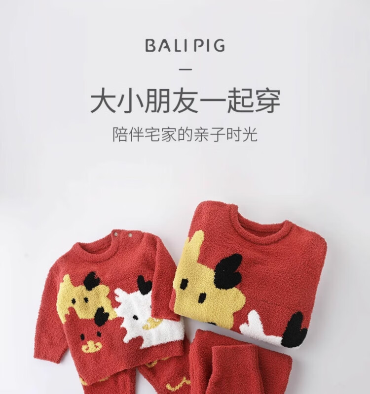Bali Piggy parent-child outfit for a family of three, New Year's clothing, home clothes set, autumn and winter velvet thickened warm pajamas, baby winter clothes, bright red baby style 90 cm