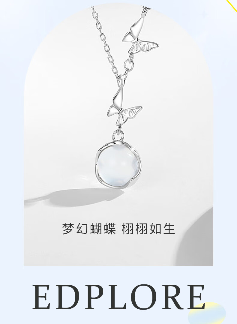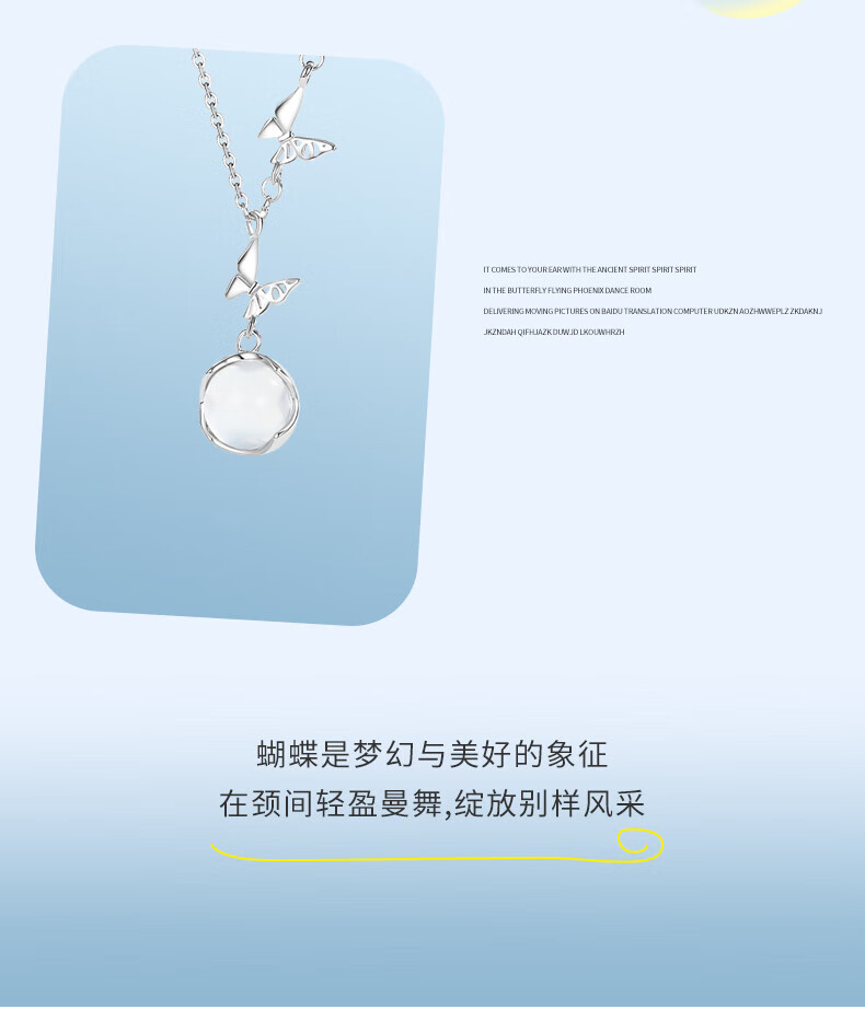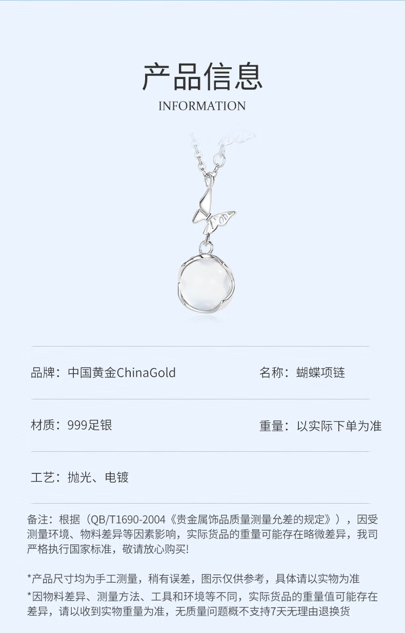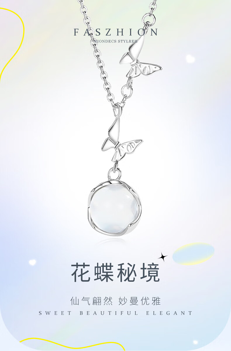 CHINA GOLD Butterfly Necklace Women's Silver Butterfly Moonstone Pendant Collarbone Valentine's Day Birthday Gift for Girlfriend and Wife Pure Silver 999 Butterfly Necklace Brand Gift Box