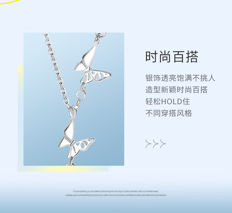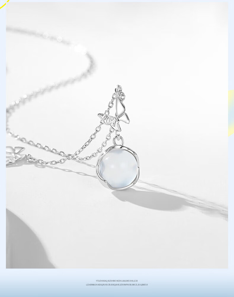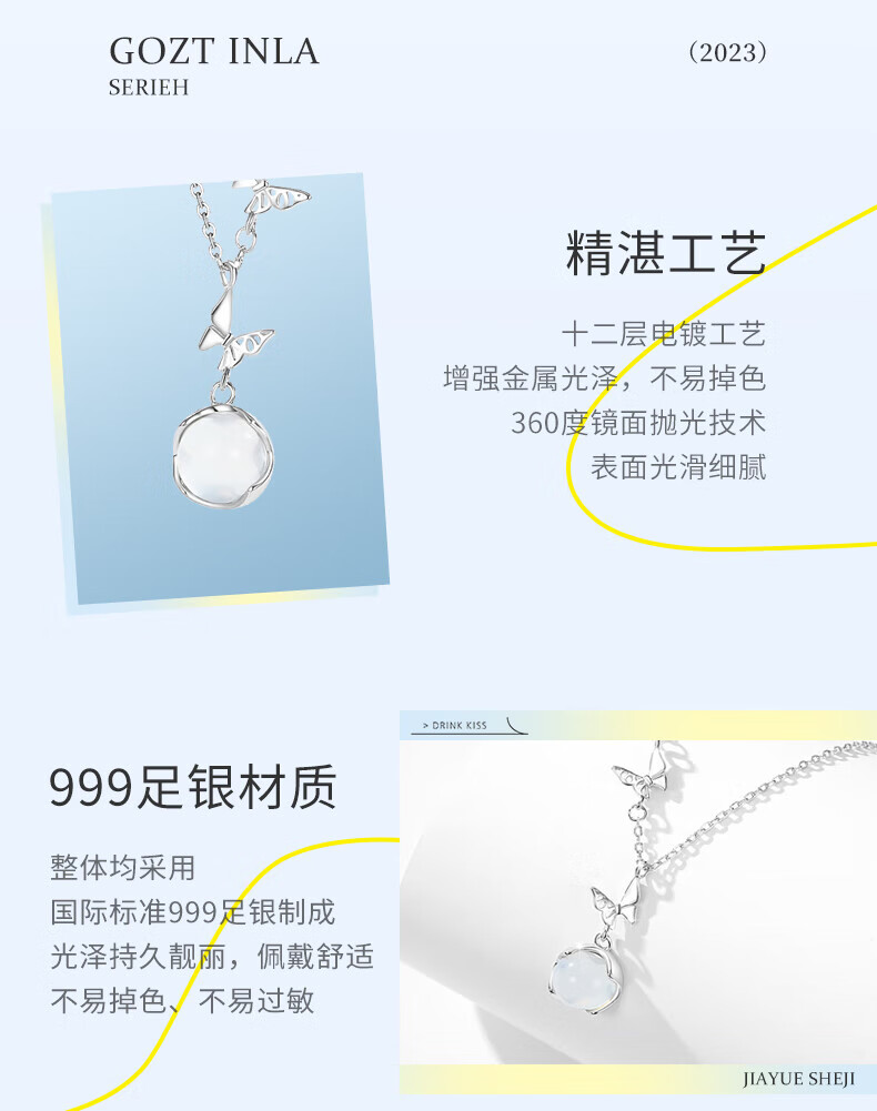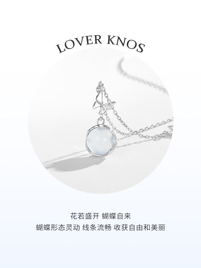 CHINA GOLD Butterfly Necklace Women's Silver Butterfly Moonstone Pendant Collarbone Valentine's Day Birthday Gift for Girlfriend and Wife Pure Silver 999 Butterfly Necklace Brand Gift Box