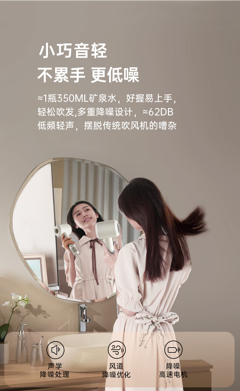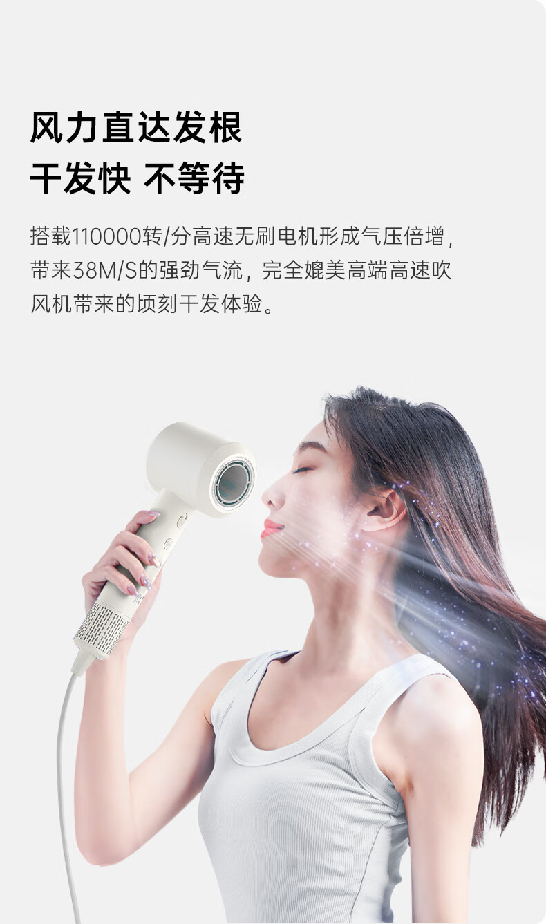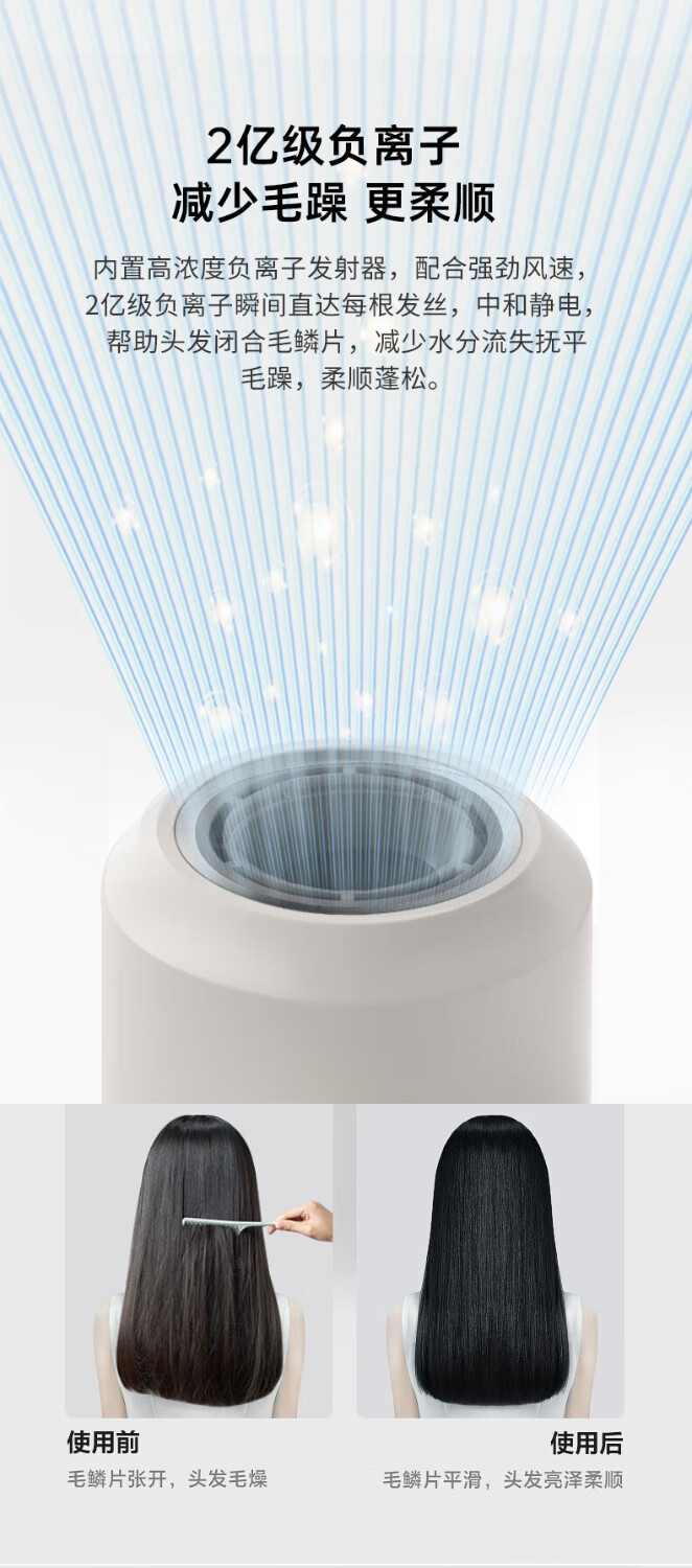 Xingjia high-speed hair dryer, hollow leafless negative ion, does not hurt hair, strong wind, quick drying, low noise, portable hair dryer for student dormitory, off-white