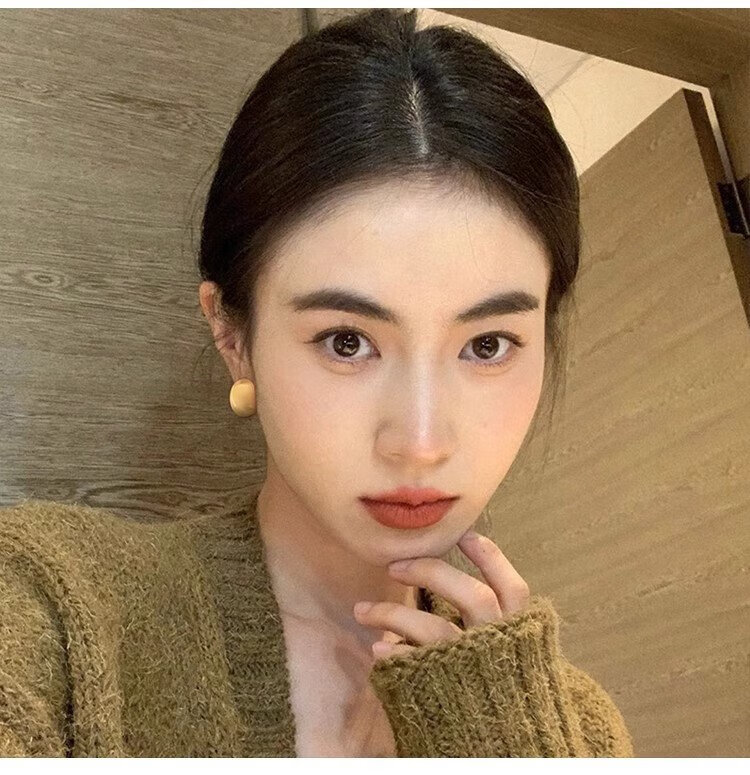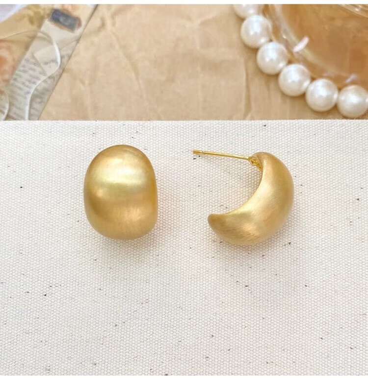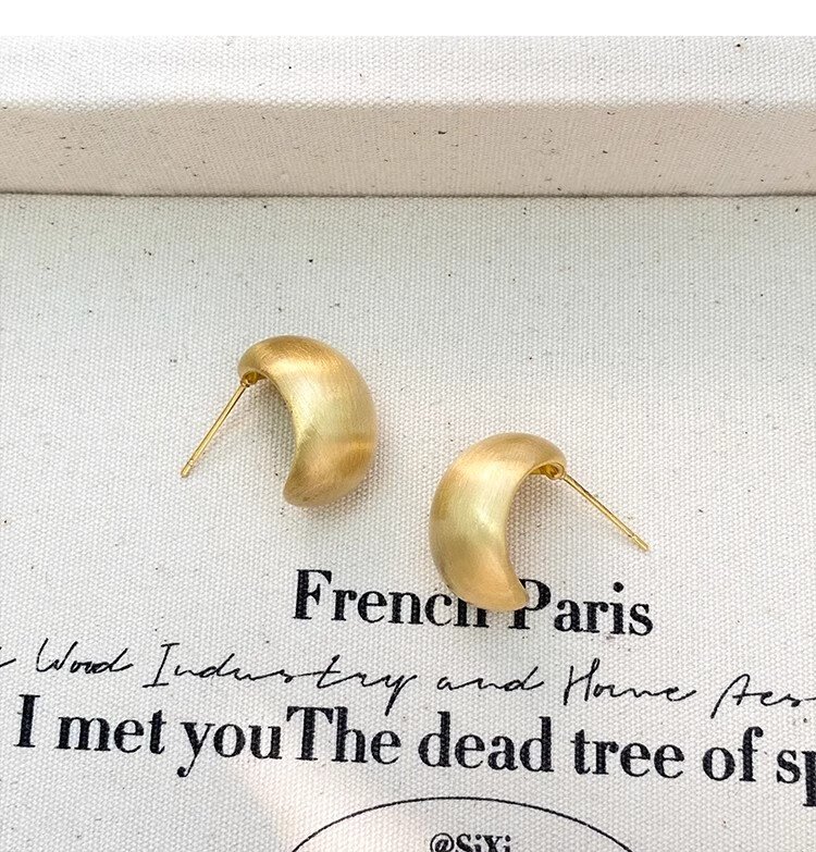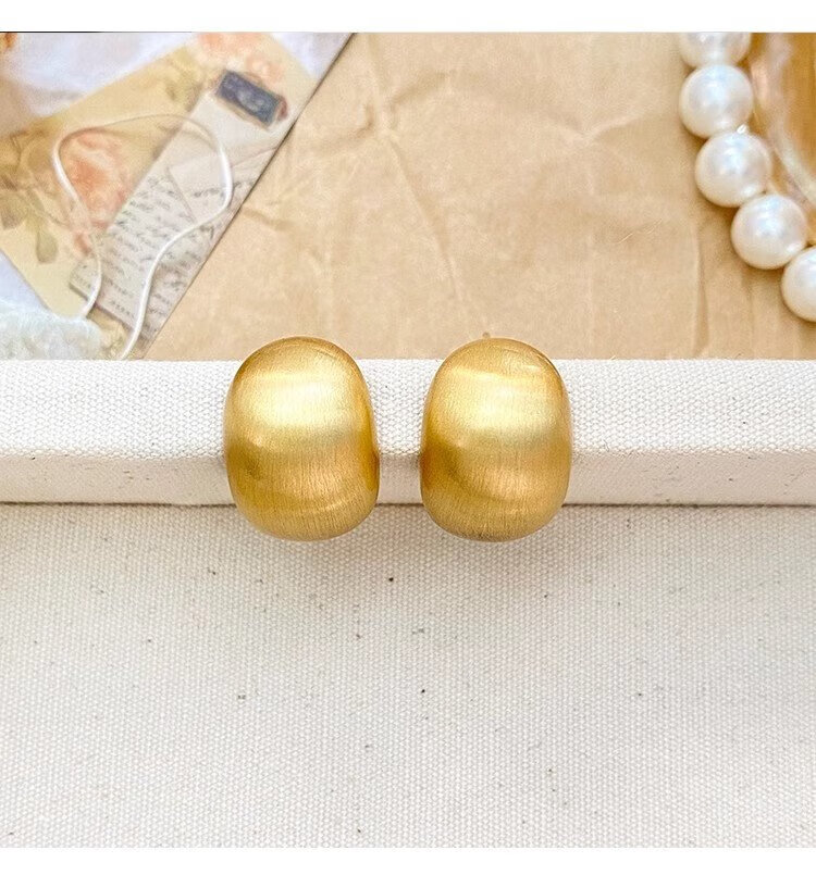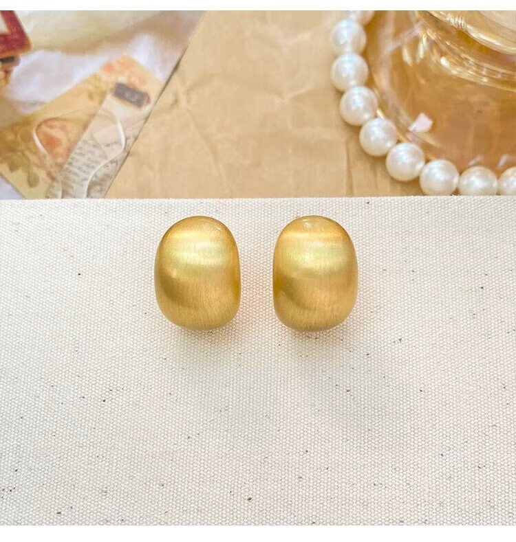 Oein matte brushed silver earrings gold light luxury high-end round earrings temperament earrings fashionable design earrings gold pair gift box