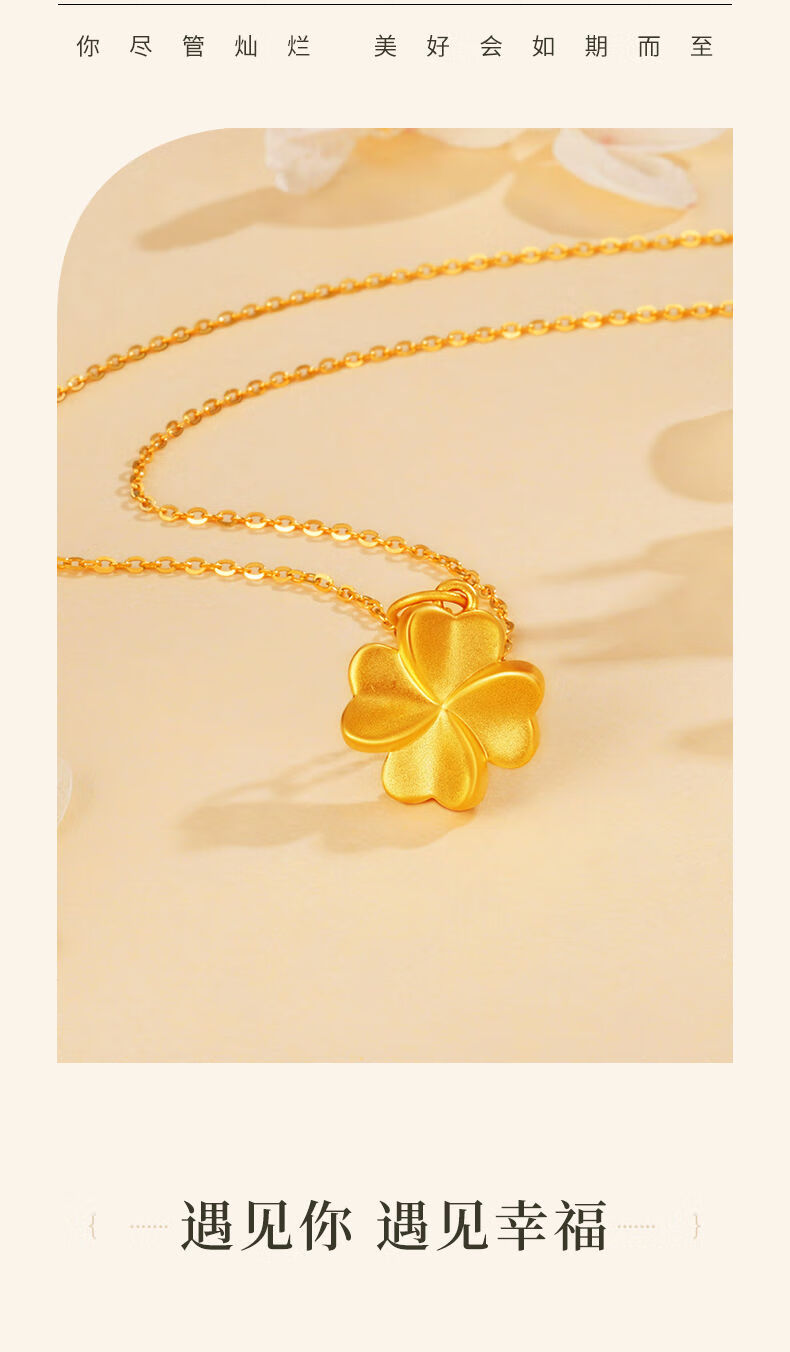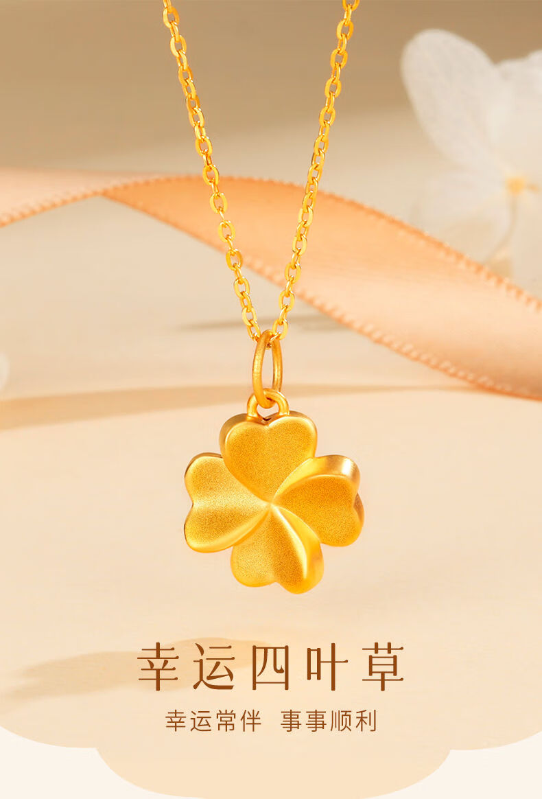 Kiss Four-leaf Clover Gold Necklace Women's Pure Gold Pendant Women's Pure Gold Birthday Valentine's Day Gift for Girls A Four-leaf Clover Pure Gold Pendant Approximately 0.41g Free Silver Chain+