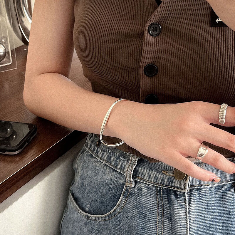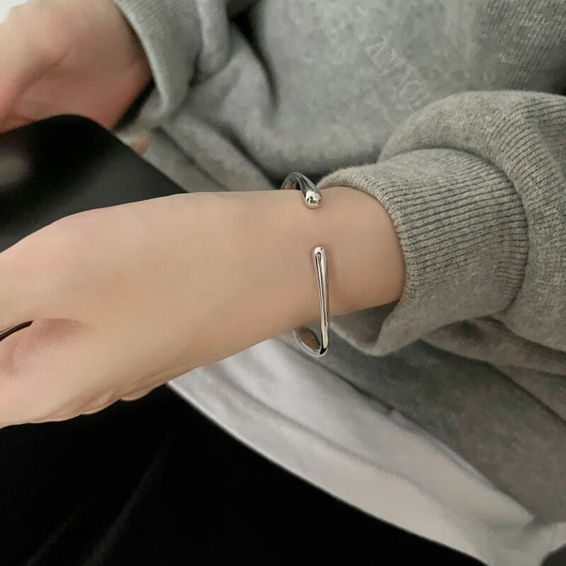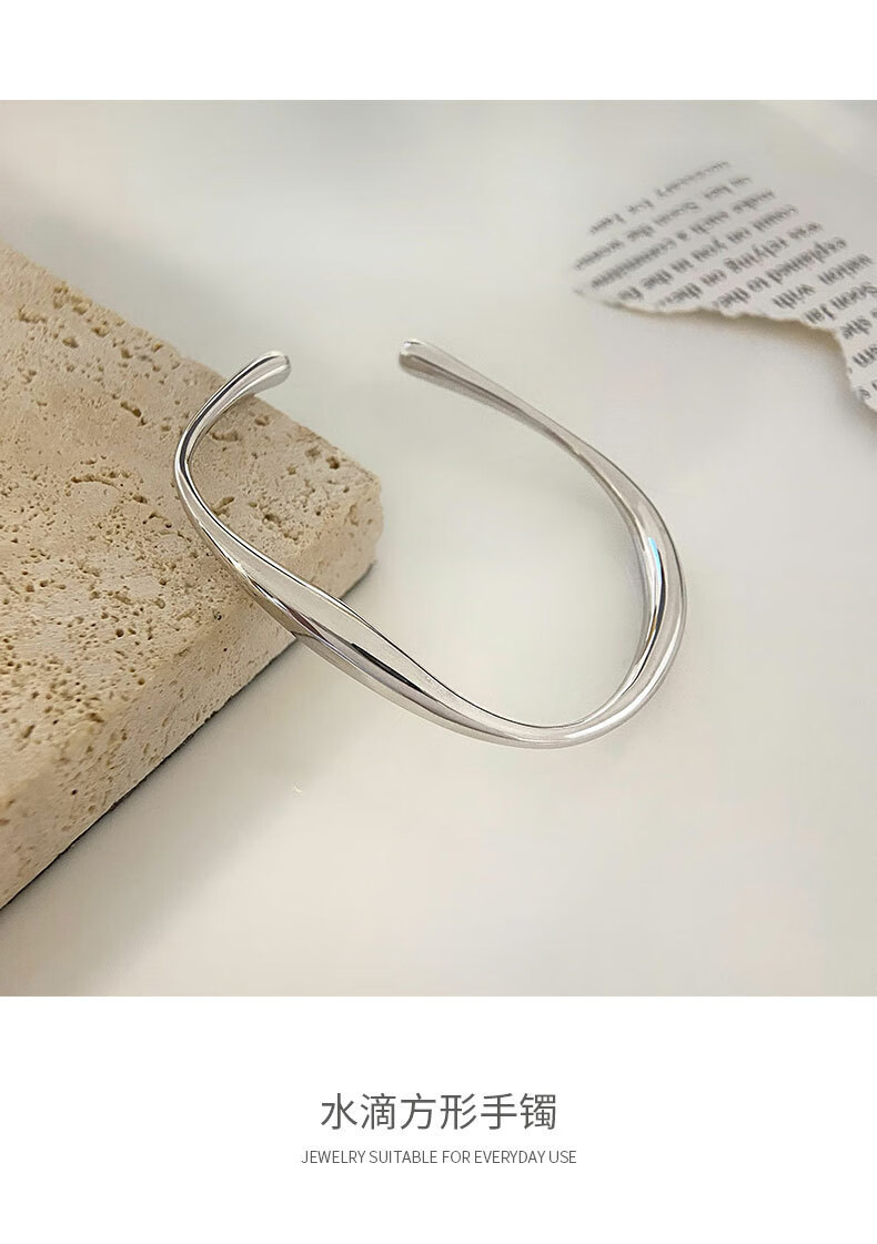 Luruo sterling silver water drop opening solid bracelet women's bracelet new cool style geometric fashion light luxury jewelry bracelet bracelet whole body sterling silver thick version about 21 grams