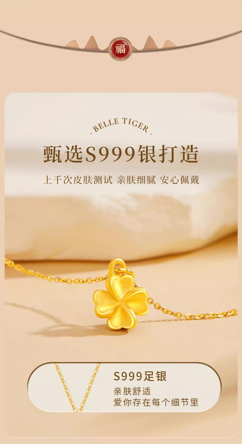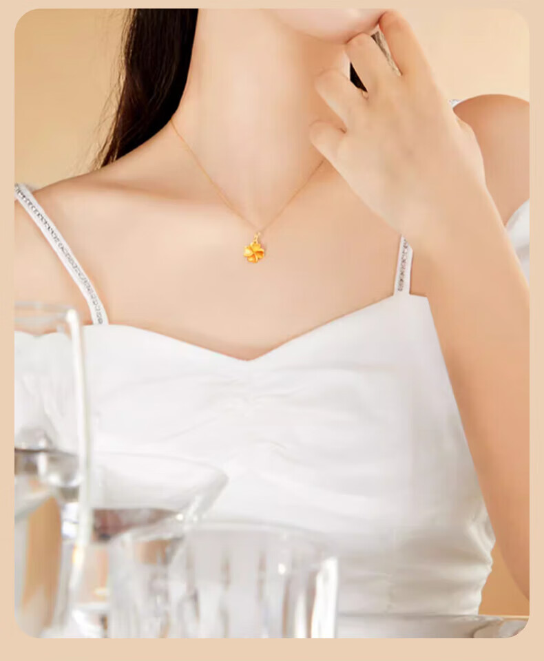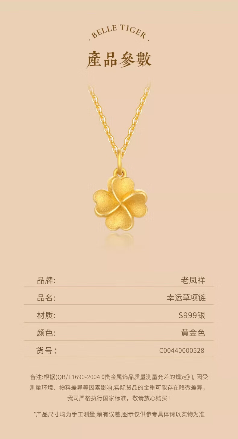 Lao Fengxiang Clover Necklace for Women New Pure Silver Pendant Fashionable Silver Jewelry Birthday Gift for Girlfriend and Wife Today/Next Day Delivery* Pure Silver Clover Necklace Brand Gift Box