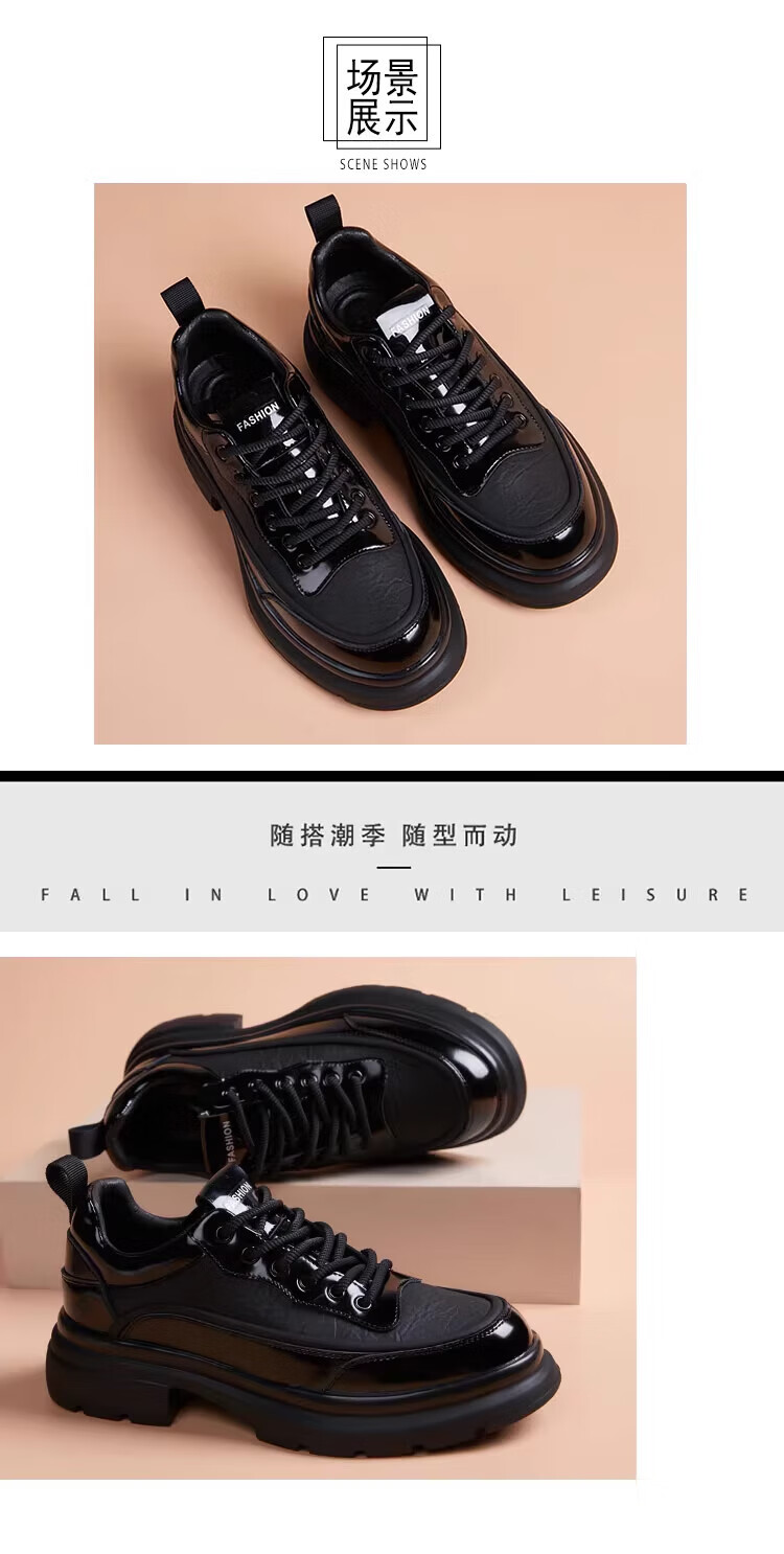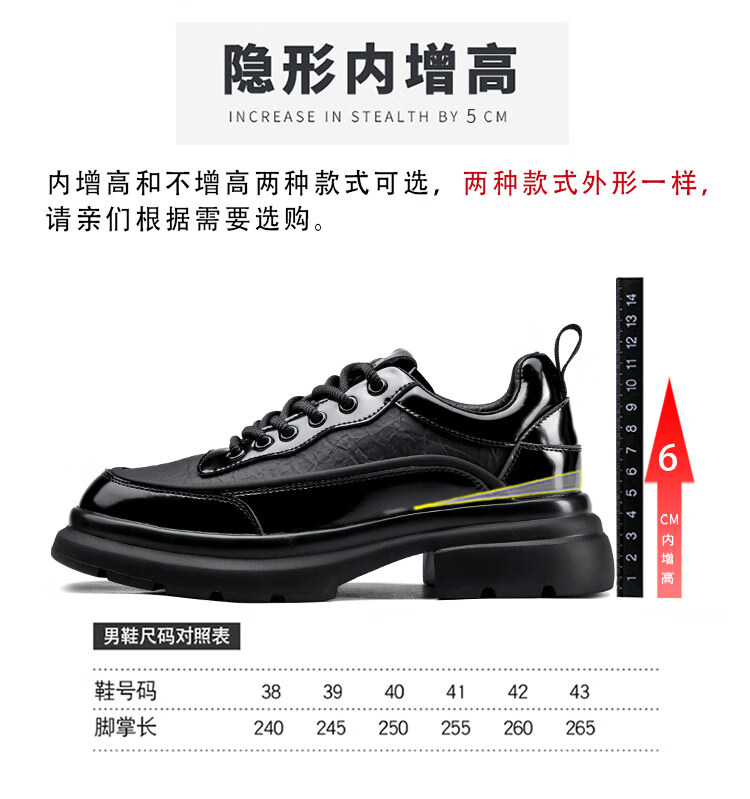 CARTELO men's leather shoes men's thick-soled British trend inner heightening derby shoes genuine leather business formal wear Korean patent leather casual shoes black non-heightening 40