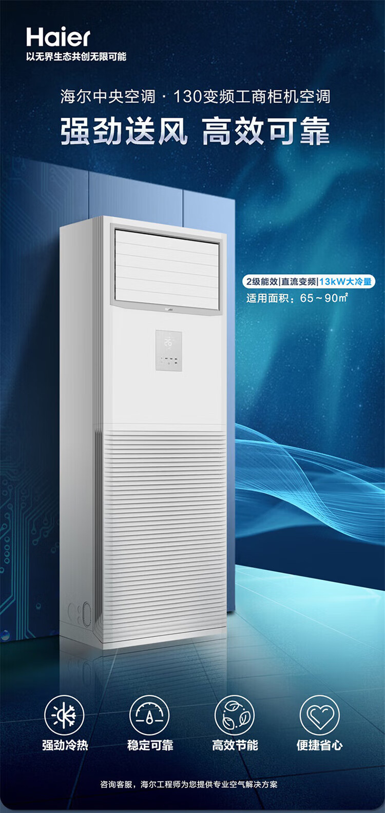 Haier (Haier) 5p6 hp central air conditioner commercial vertical square cabinet air conditioner factory cooling and heating frequency conversion second-level energy efficiency three-phase electricity 380V cooling and heating 5 hp first-level energy efficiency