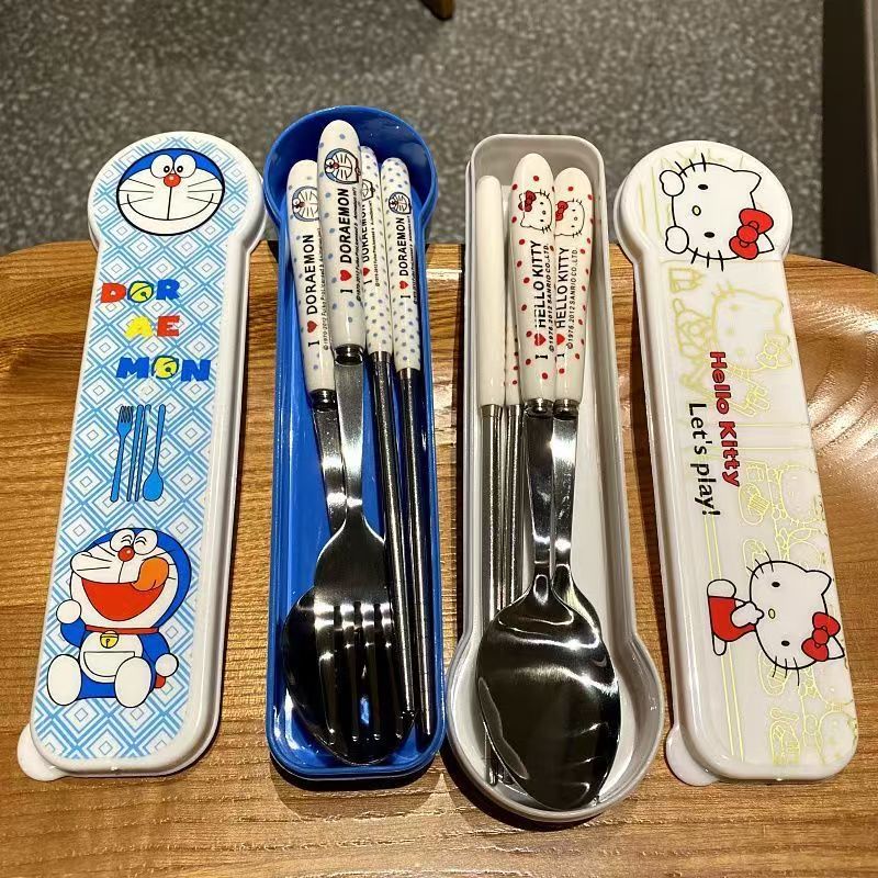Spoon ins high-looking chopsticks and spoon set three-piece set fork set box student single tableware storage box KT cat 4-piece set