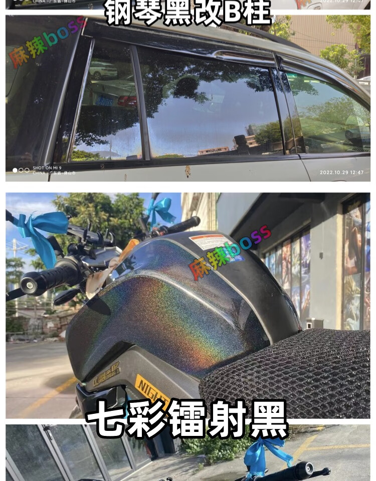 MDMODIFYPET car film electric vehicle motorcycle color changing film matte samurai black piano black body colorful laser black PET crystal piano black 0.5m wide 1m long