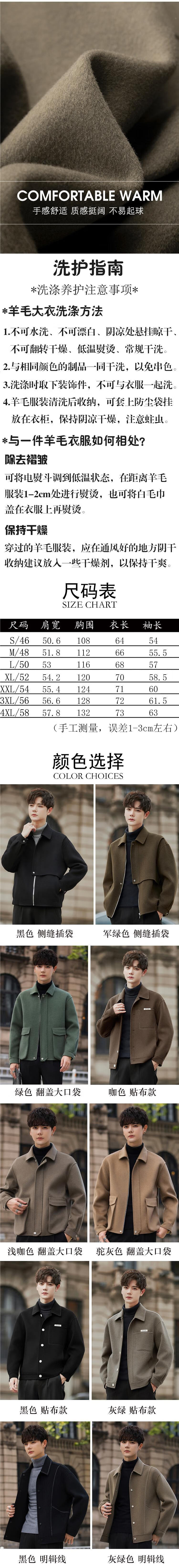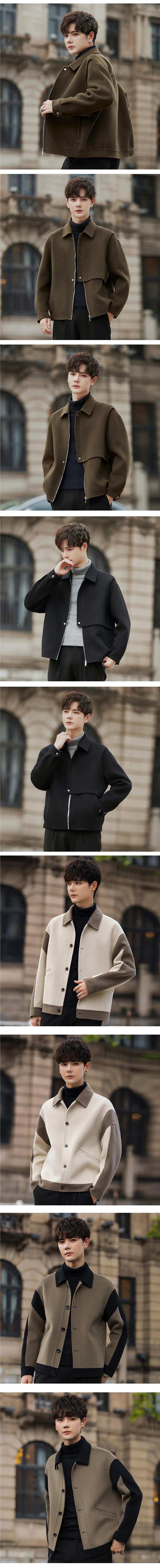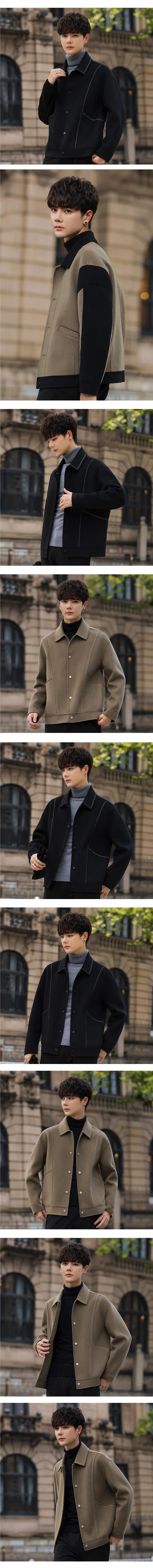 JEEP SPIRIT autumn and winter high-end wool double-sided woolen coat men's short lapel jacket woolen top men's woolen coat light brown XL 130-150Jin Jin equals 0.5 kg