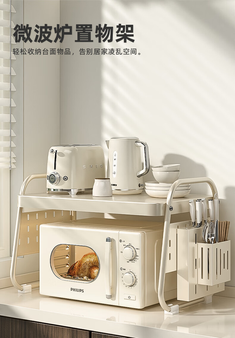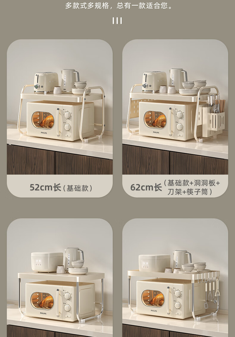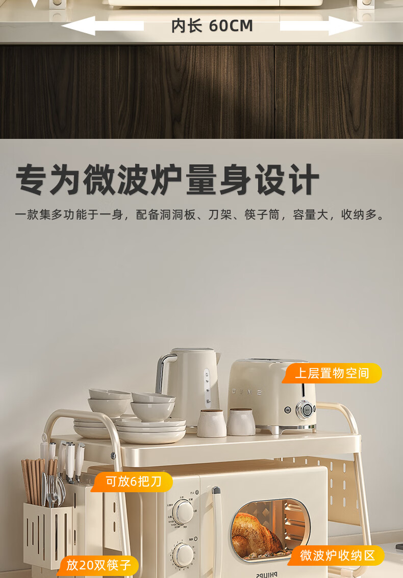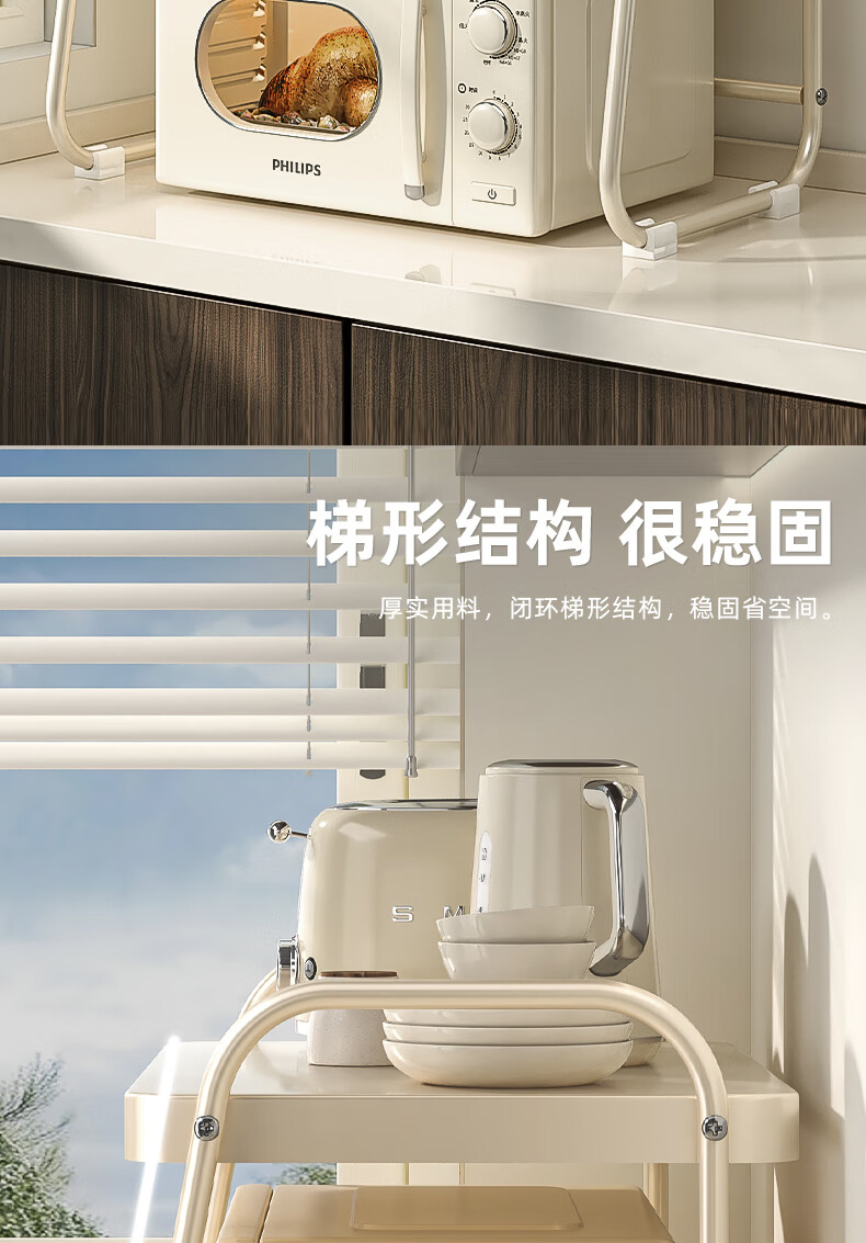 OUOETY Cream Style Microwave Oven Storage Rack Kitchen Household Rice Cooker Oven Bracket Countertop Desktop Storage Rack Milk White Medium Size - Trapezoid 52cm Long