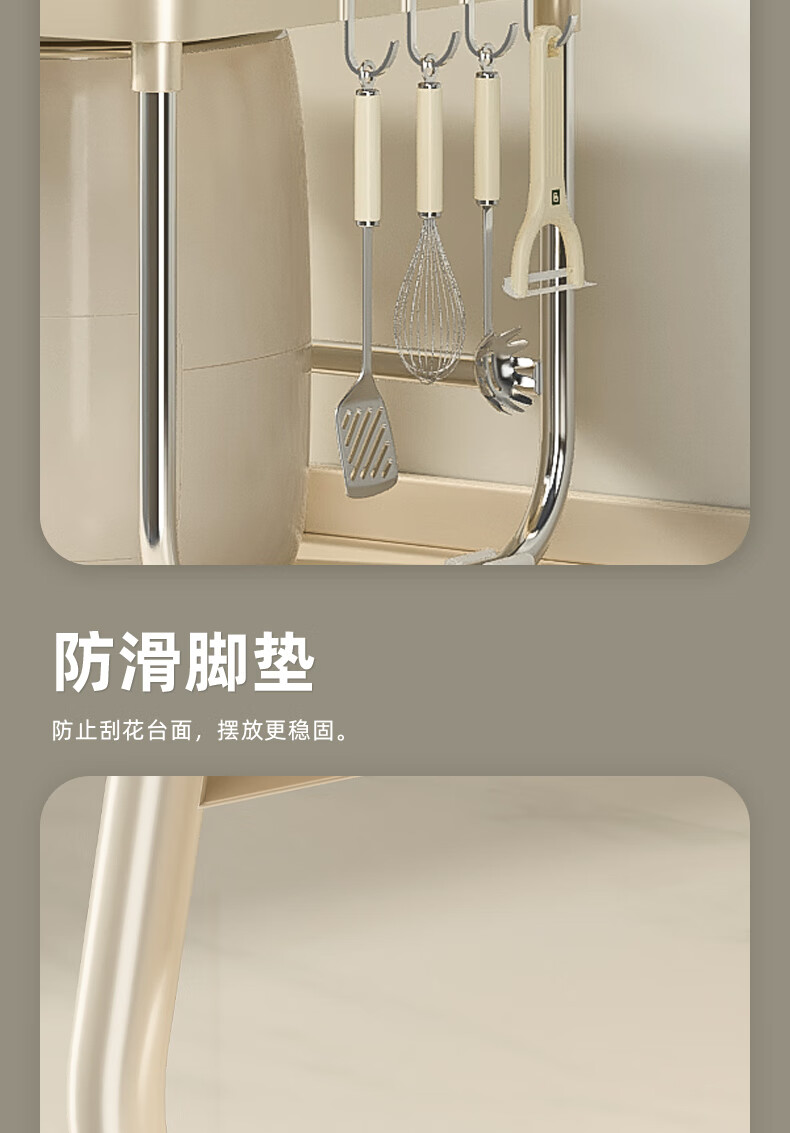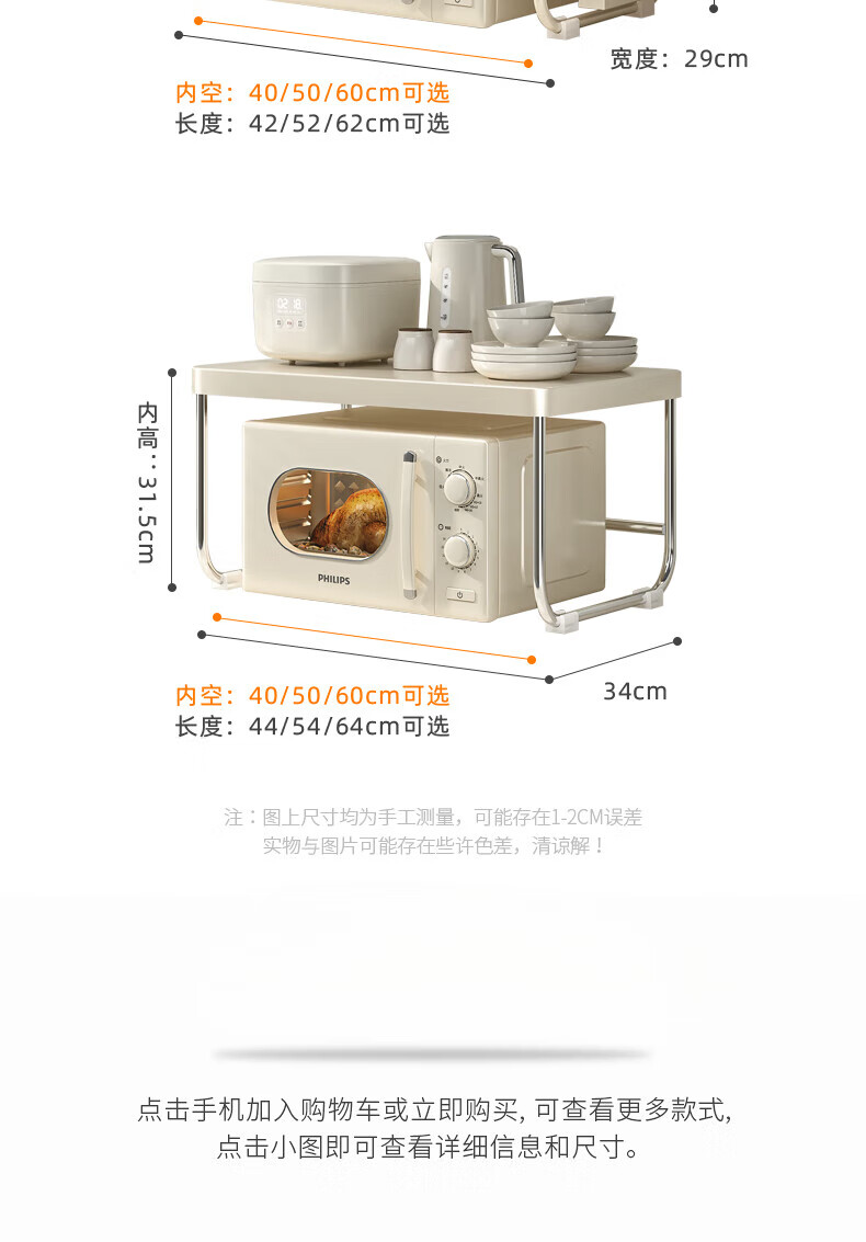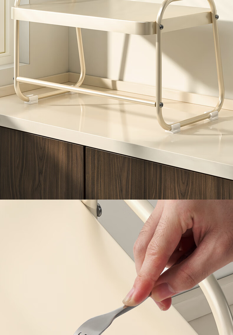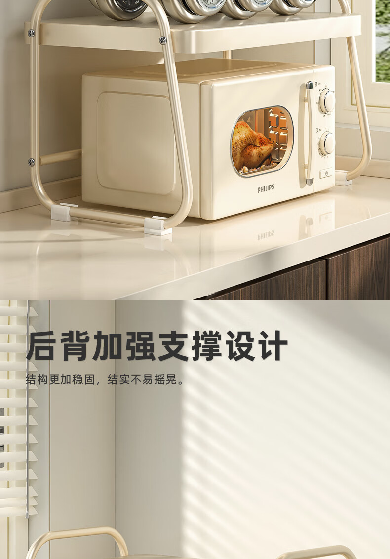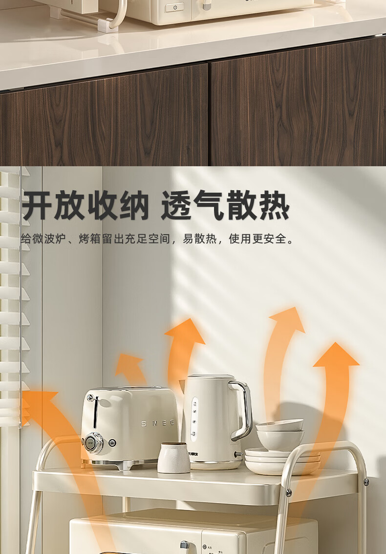 OUOETY Cream Style Microwave Oven Storage Rack Kitchen Household Rice Cooker Oven Bracket Countertop Desktop Storage Rack Milk White Medium Size - Trapezoid 52cm Long