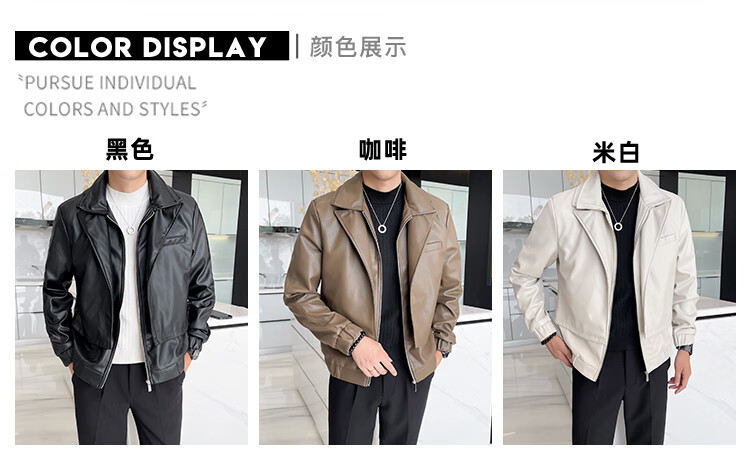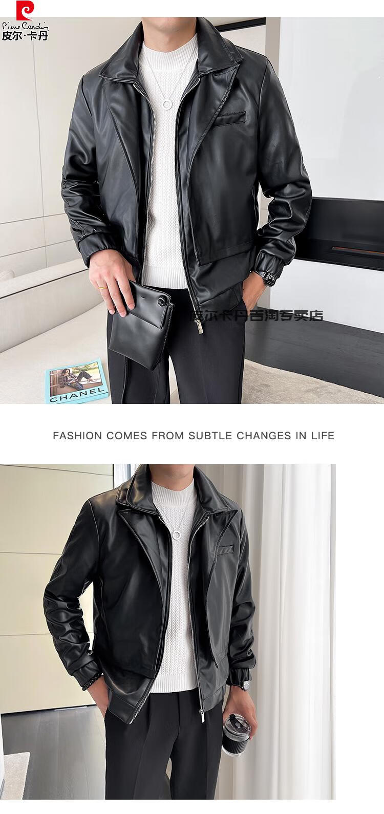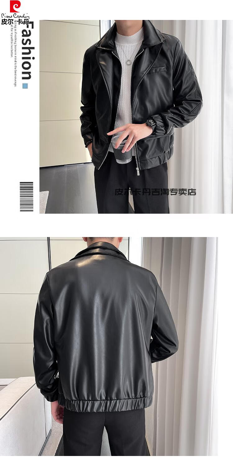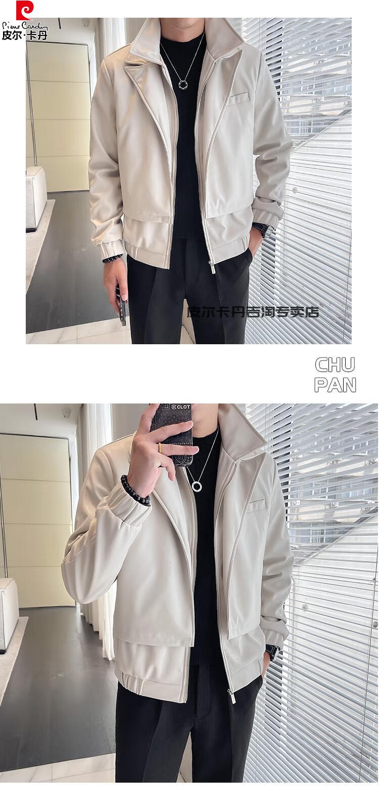 Pierre Cardin high-end fake two-piece double-collar leather jacket men's trendy brand spring and autumn 2024 retro motorcycle leather jacket brown M recommended 120Jin Jin is equal to 0.5 kg or less