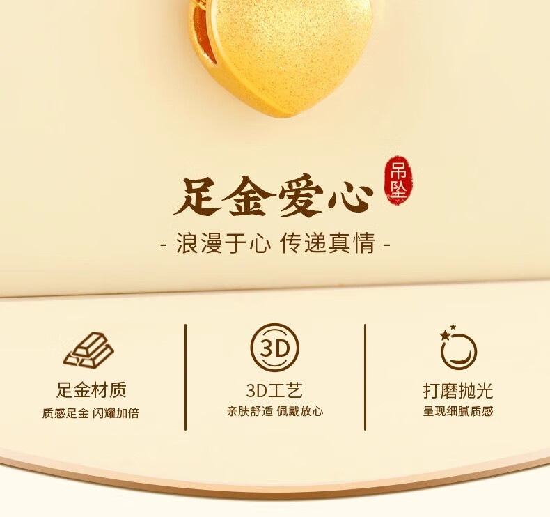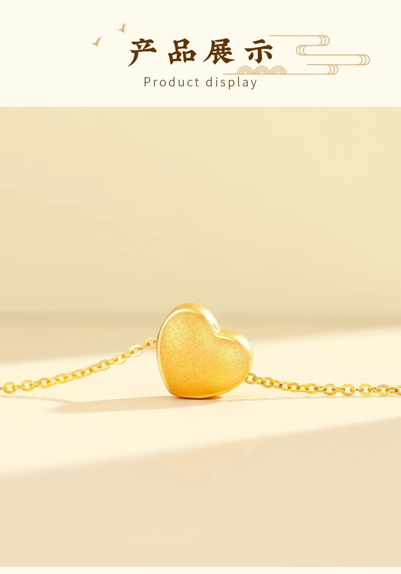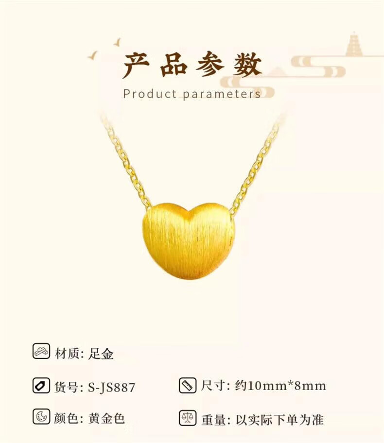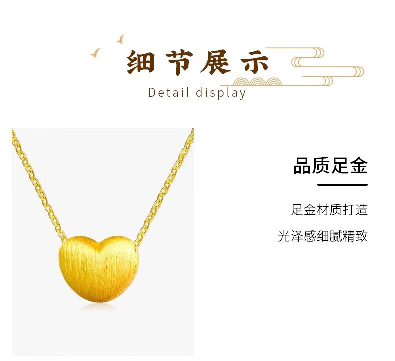 CHINA GOLD Love Gold Necklace Women's Pure Gold Pendant Birthday Gift for Girlfriend and Wife Pure Gold Love Pendant Gold Weight About 0.3g Free Silver Chain