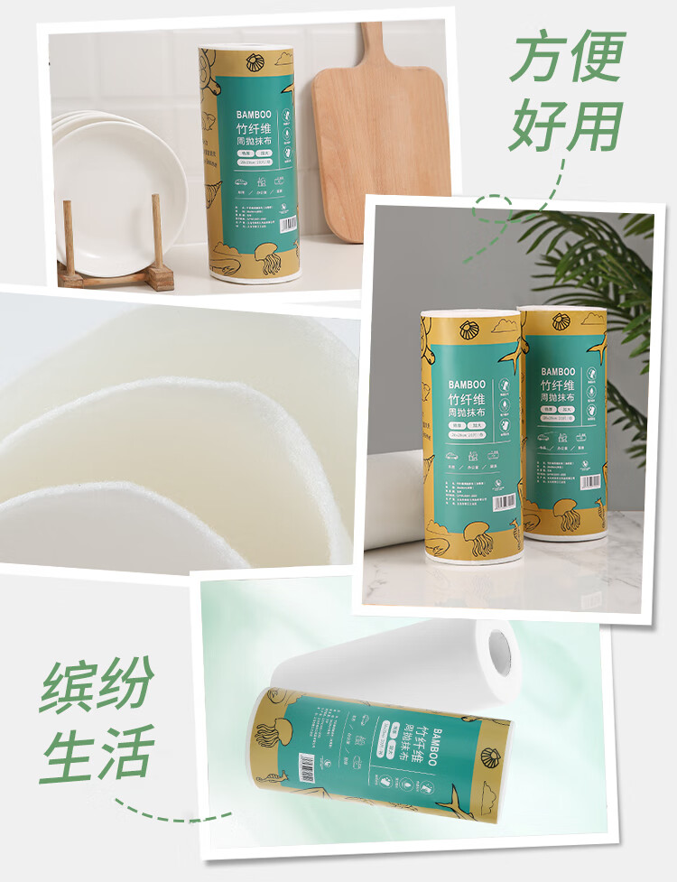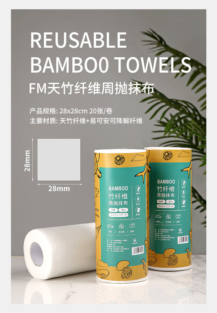 Fengzhu BAMBOO Bamboo Fiber Weekly Disposable Rags, Extra Thickened Wet and Dry Kitchen Cleaning, Oil Removing Dishwashing Towels, Lazy Rags, Weekly Disposable Rags/Two Rolls of 40 Pieces