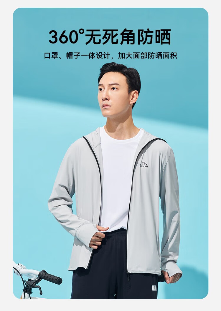 Pelliot sun protection jacket men's UV protection UPF50+ skin windbreaker ice silk sports thin cycling jersey seagull gray M