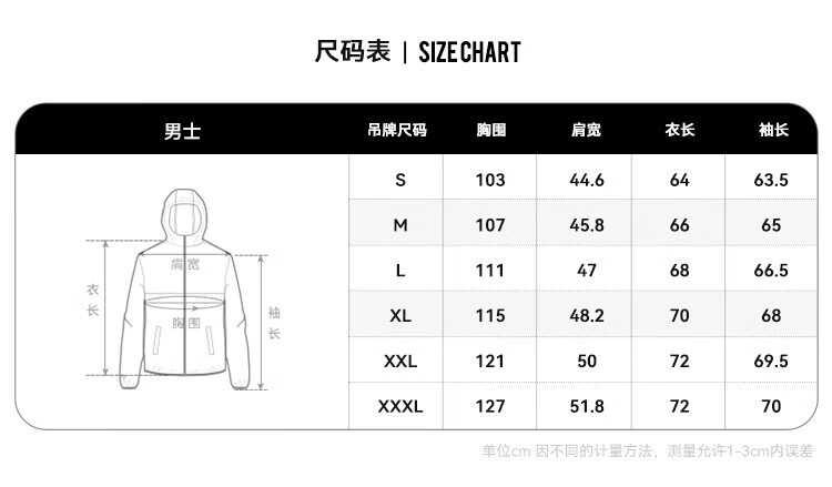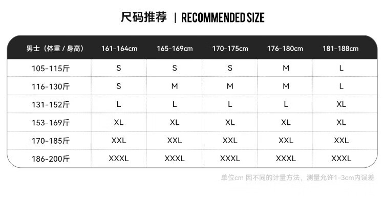 China (cm) 165 / 88-90 170 / 96-98 175 / 108-110 180 / 118-122 185 / 126-130