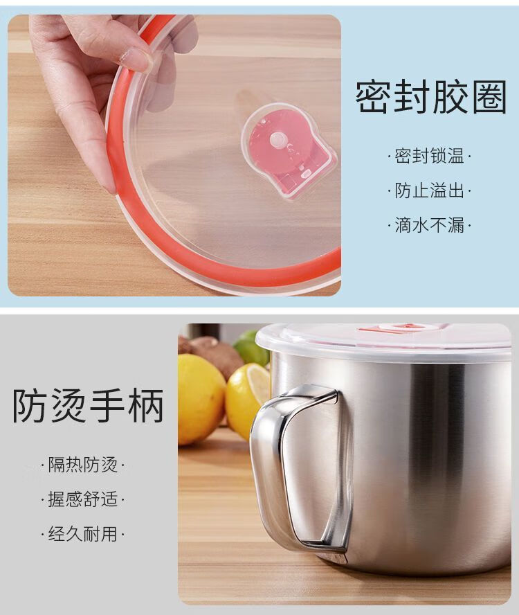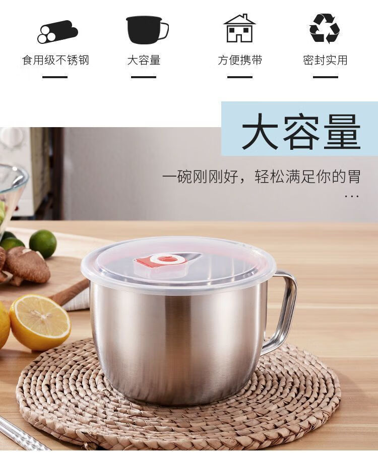 Xiongwochi Extra Thick 316 Stainless Steel Instant Noodle Bowl with Cover for Students and Office Workers Canteen Multifunctional Instant Noodle Cup 2100ml Capacity Comes with Lid 1 Inch Extra Thick 316 Stainless Steel Instant Noodle Bowl Limited Edition