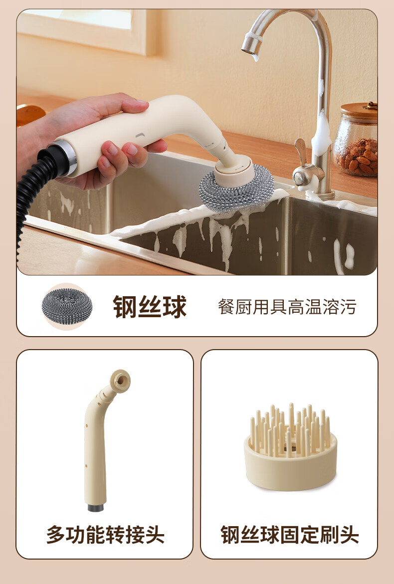 High-temperature steam cleaning machine, kitchen electric high-pressure range hood cleaning, household refrigerator cleaning machine, degreasing and deodorizing, 30-second speed hot floor scrubber, sterilization and disinfection, replacement steel ball brush head*1 piece