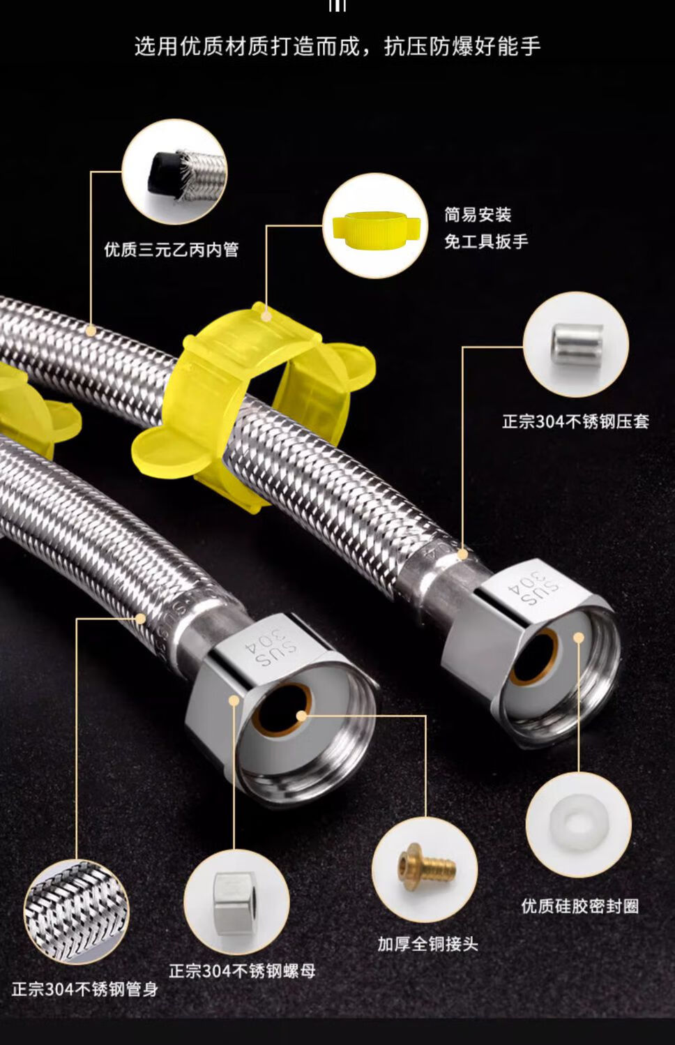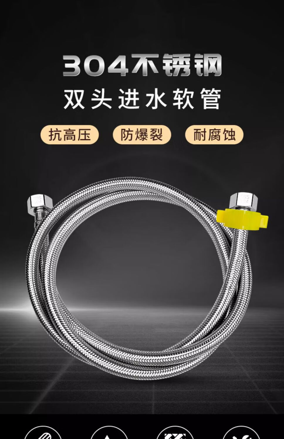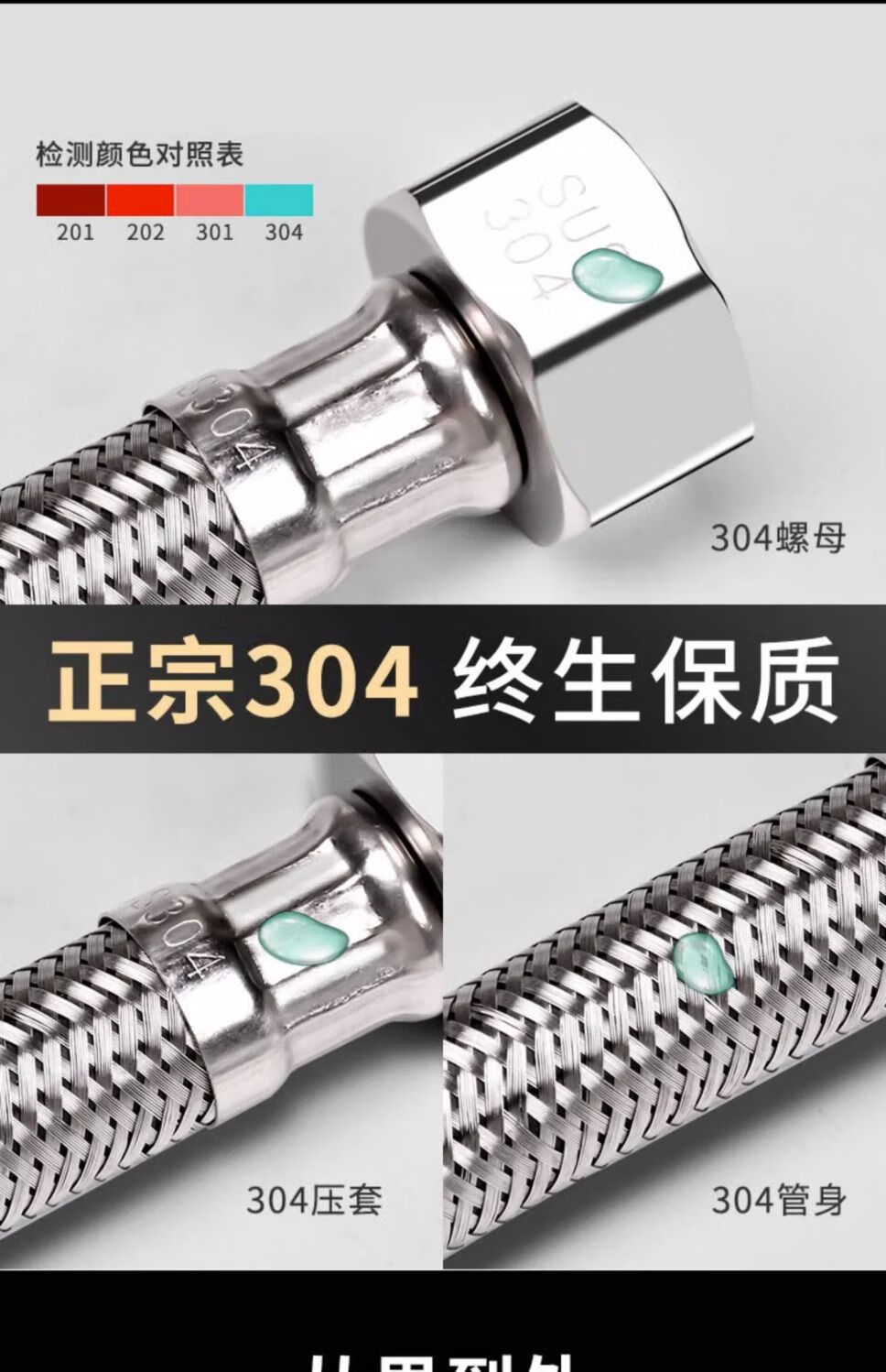 Jiumu Wangshijia 304 stainless steel braided pipe 4 points water inlet toilet water heater high pressure explosion-proof universal household thickened hot and cold 304 water inlet hose 40 cm universal 4 points