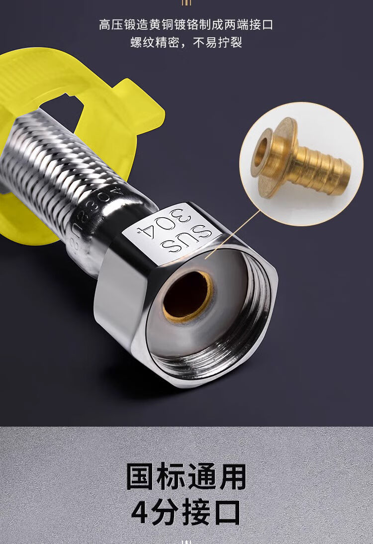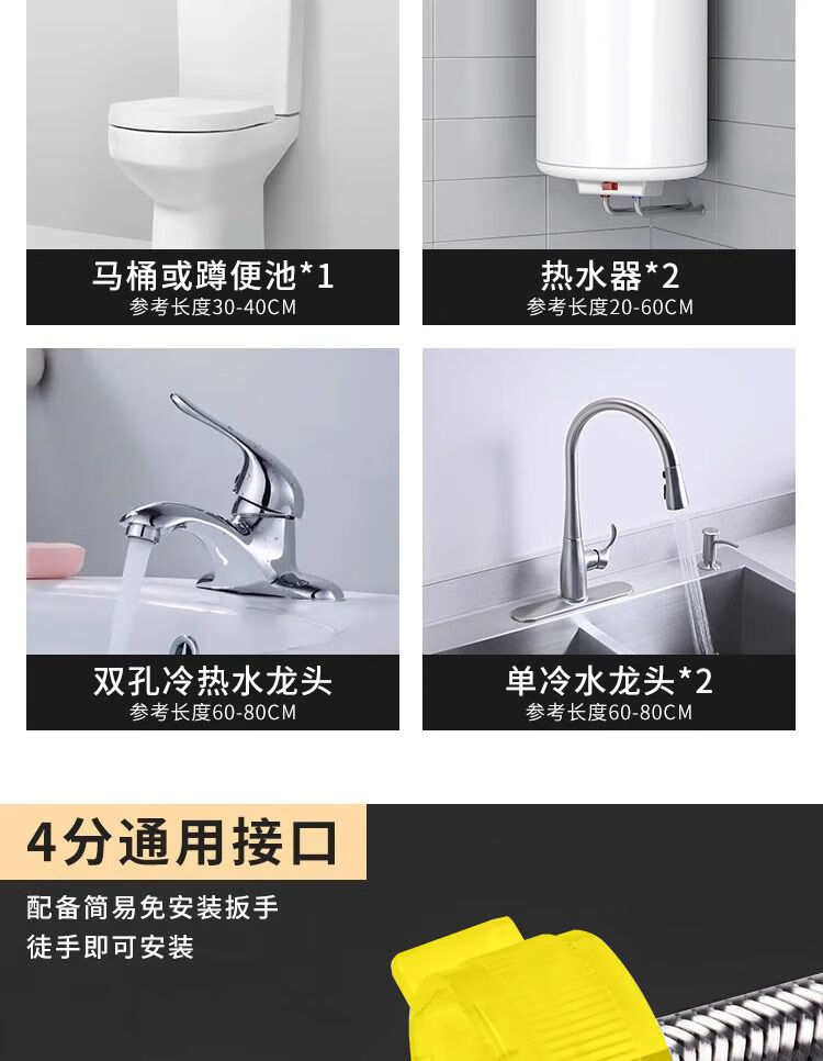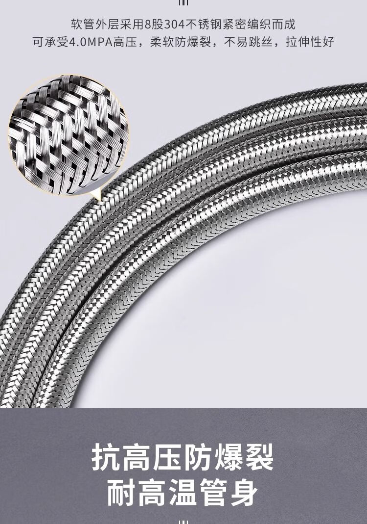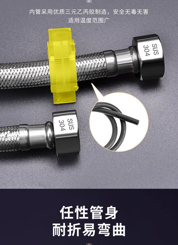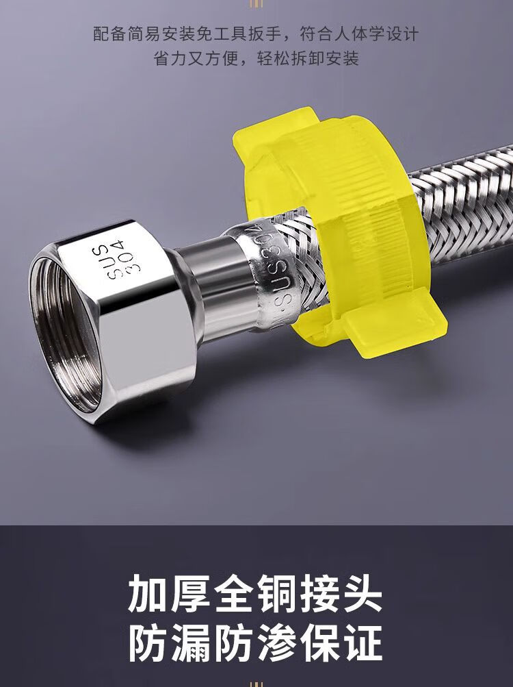 Jiumu Wangshijia 304 stainless steel braided pipe 4 points water inlet toilet water heater high pressure explosion-proof universal household thickened hot and cold 304 water inlet hose 40 cm universal 4 points