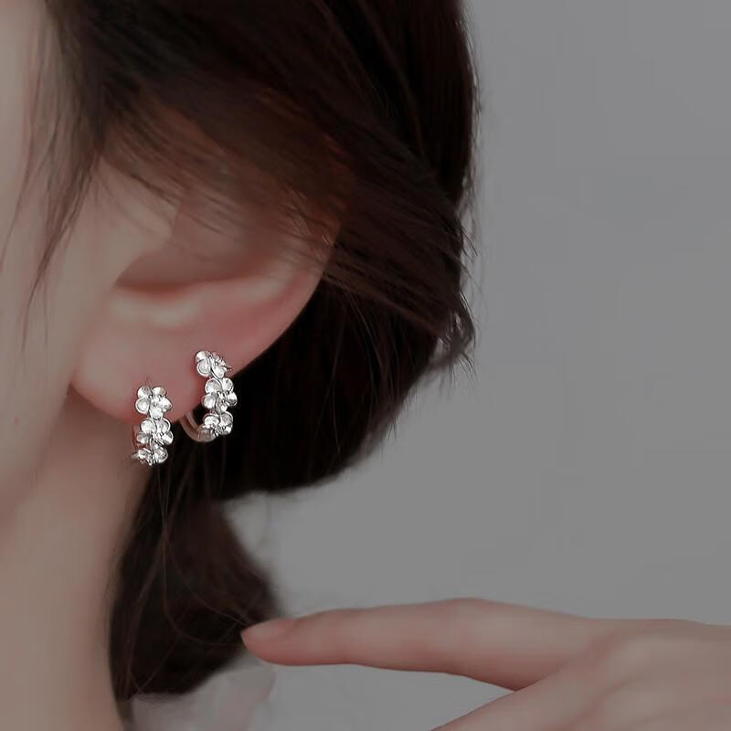 Flowers Three Flowers Earrings New Trendy Unique Niche Light Luxury High-end Earrings Versatile Earrings for Women Silver Three Flowers Earrings One Pair