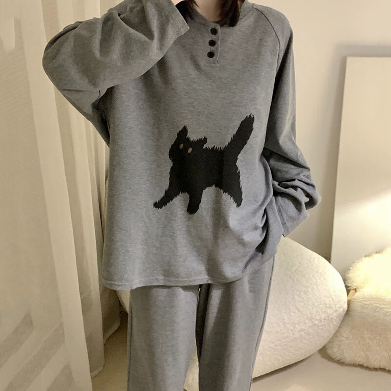 Ershanji Home Pajamas Round Neck Long Sleeve Pajamas Four Seasons New Outerwear Set Home Clothes Couple Pajamas Gray No. 2 One Size 80-125 Jin Jin equals 0.5 kg