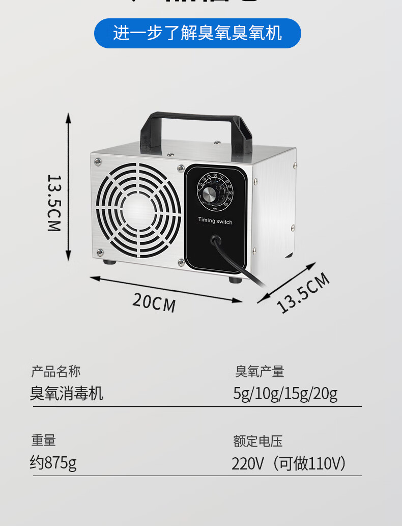 SUNCOOK ozone generator household new house decoration formaldehyde removal air purifier industrial disinfection machine food cosmetics factory school laboratory sterilization garbage room deodorization and odor removal 5g/h applicable within 50 200*135*135