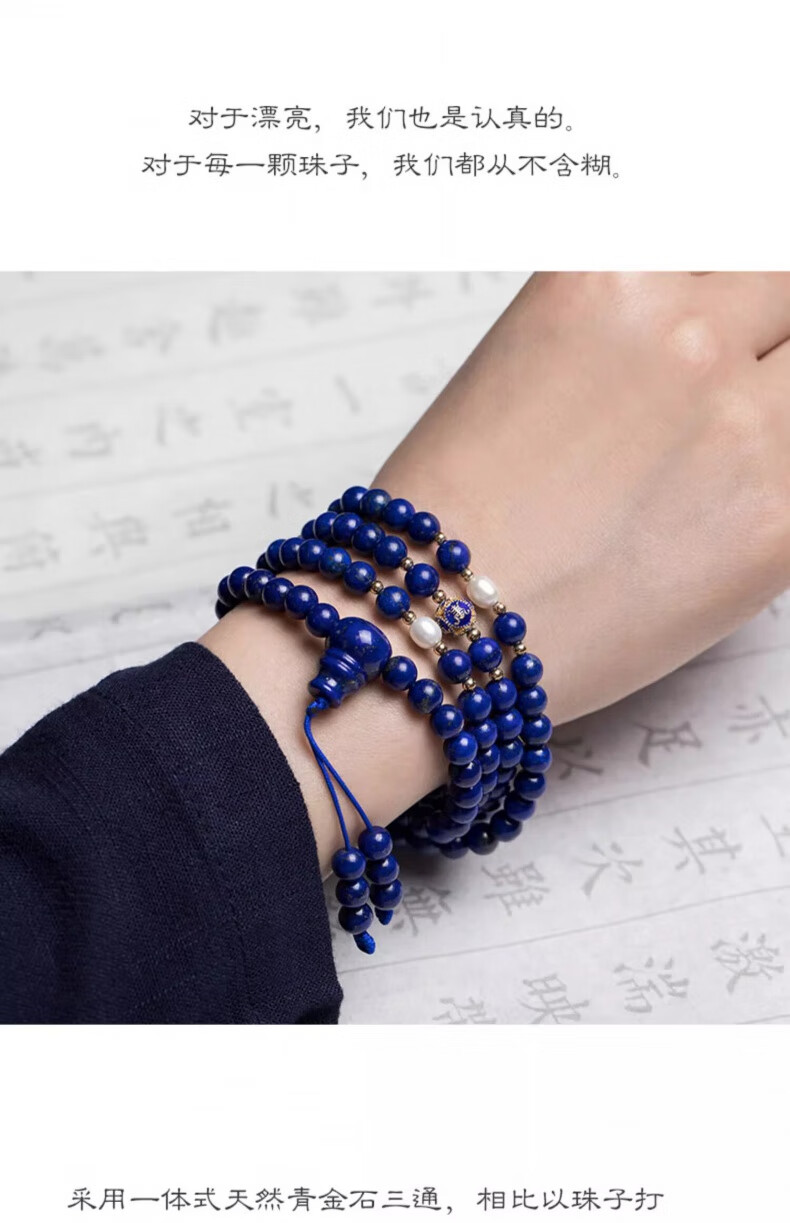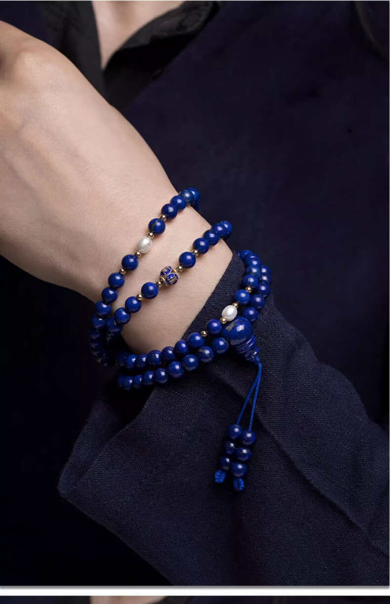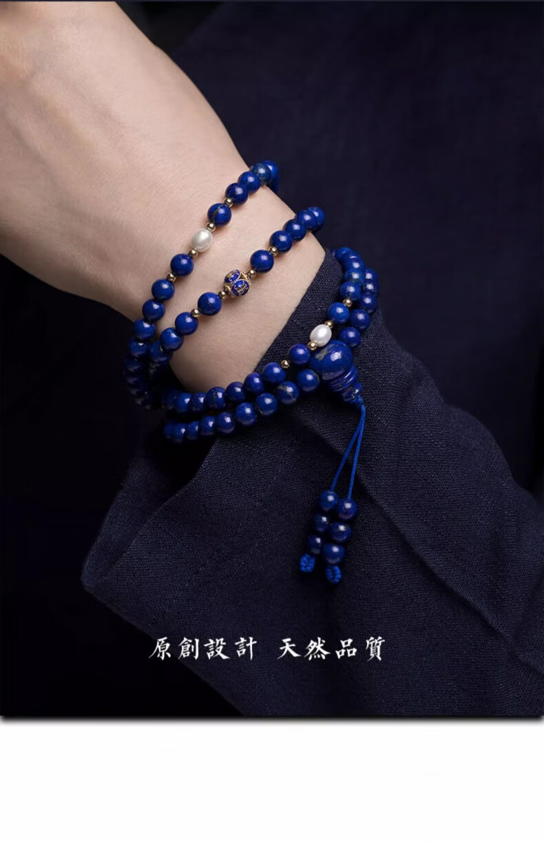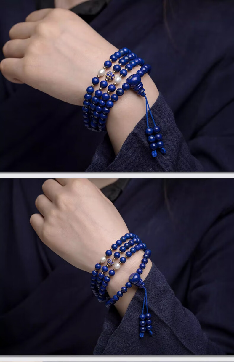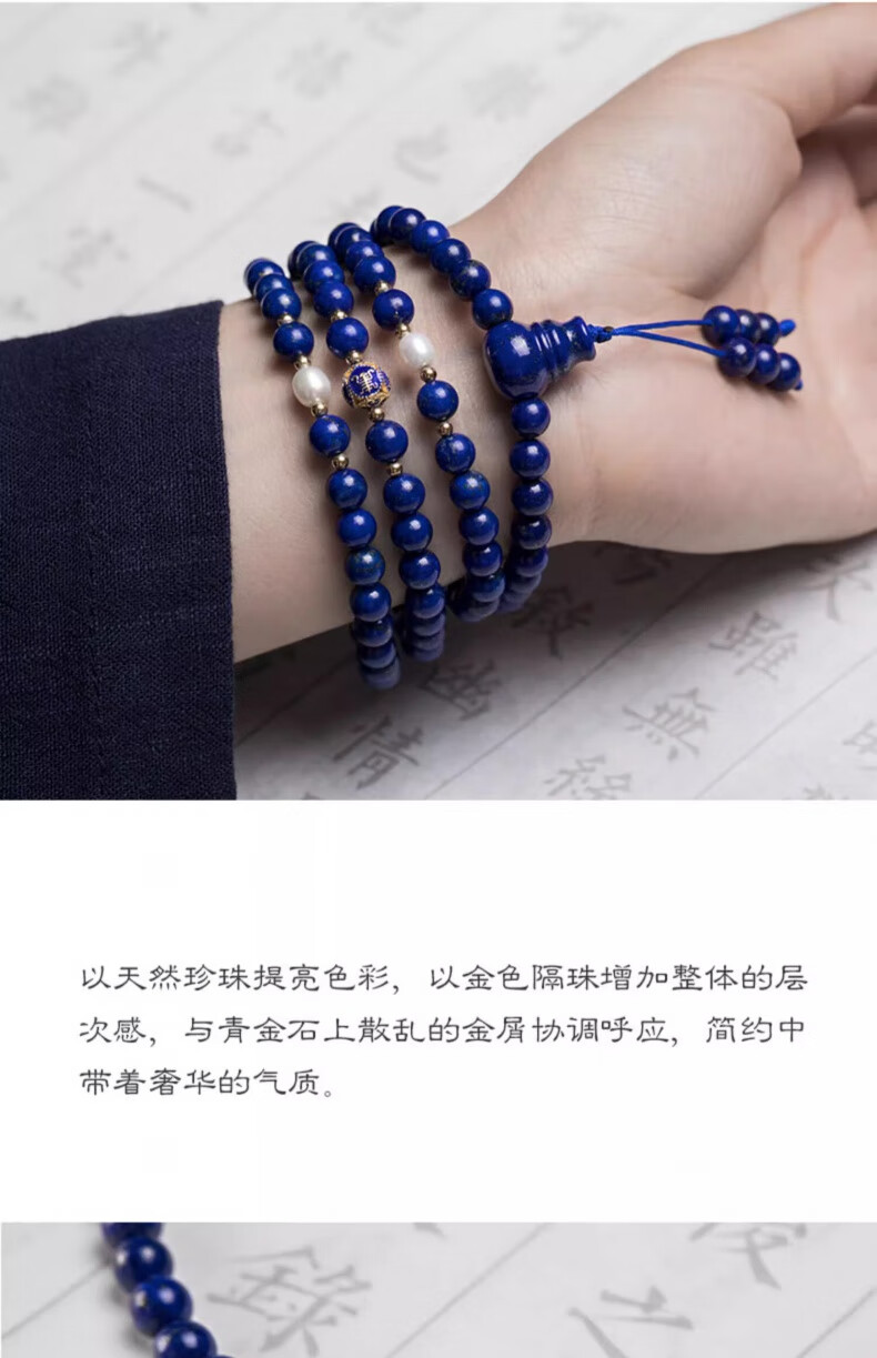 BOSFRU Lapis Lazuli Bracelet 108 Buddha Beads Bracelet for Men and Women Original Design Imperial Light Luxurious Toys for Mom and Best Friend Gift 6mm