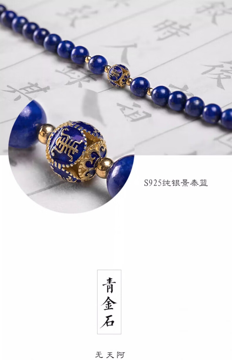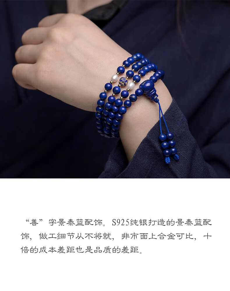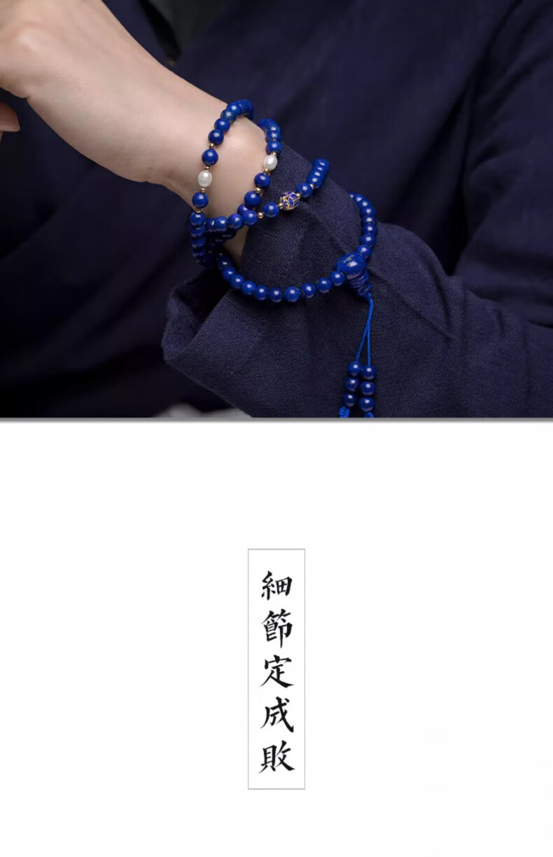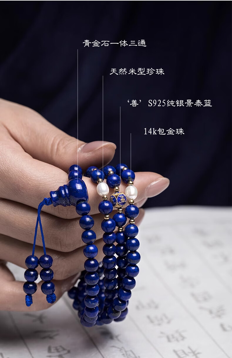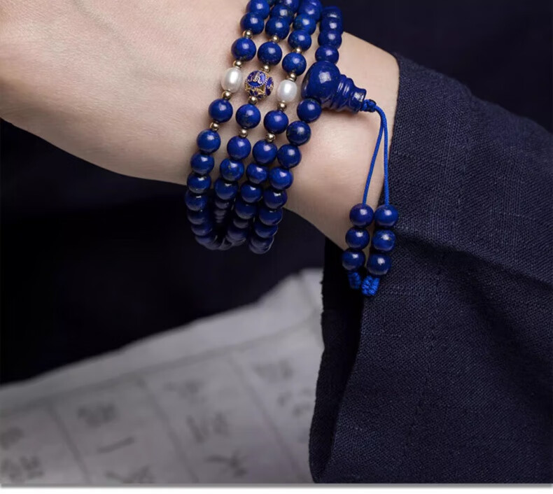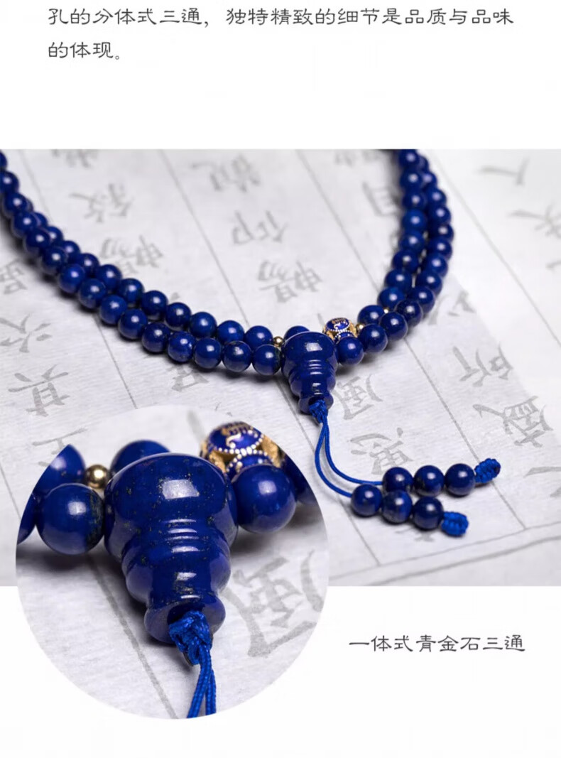 BOSFRU Lapis Lazuli Bracelet 108 Buddha Beads Bracelet for Men and Women Original Design Imperial Light Luxurious Toys for Mom and Best Friend Gift 6mm