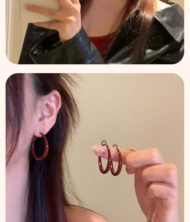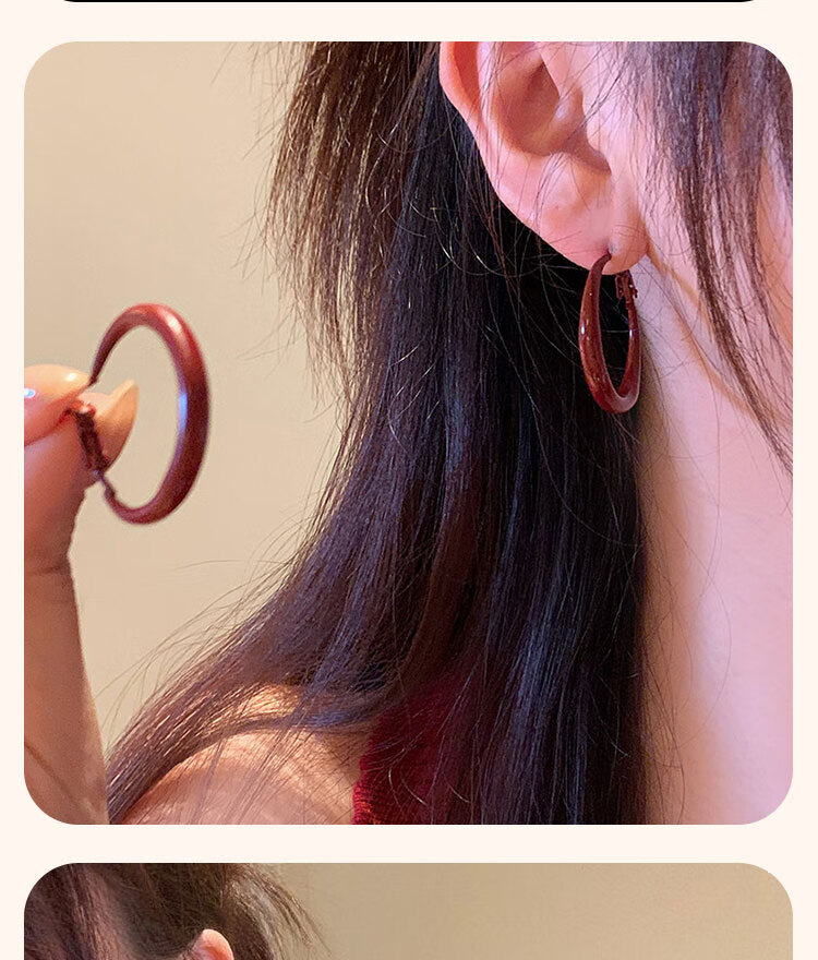 Miao Yijia Earrings for Women 2025 New Earrings Red Alloy Earrings for Round Faces and Big Faces Suitable for Temperament New Year Gifts Ancora Red Earrings 3cm