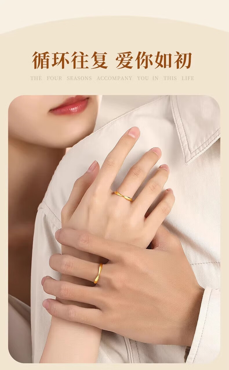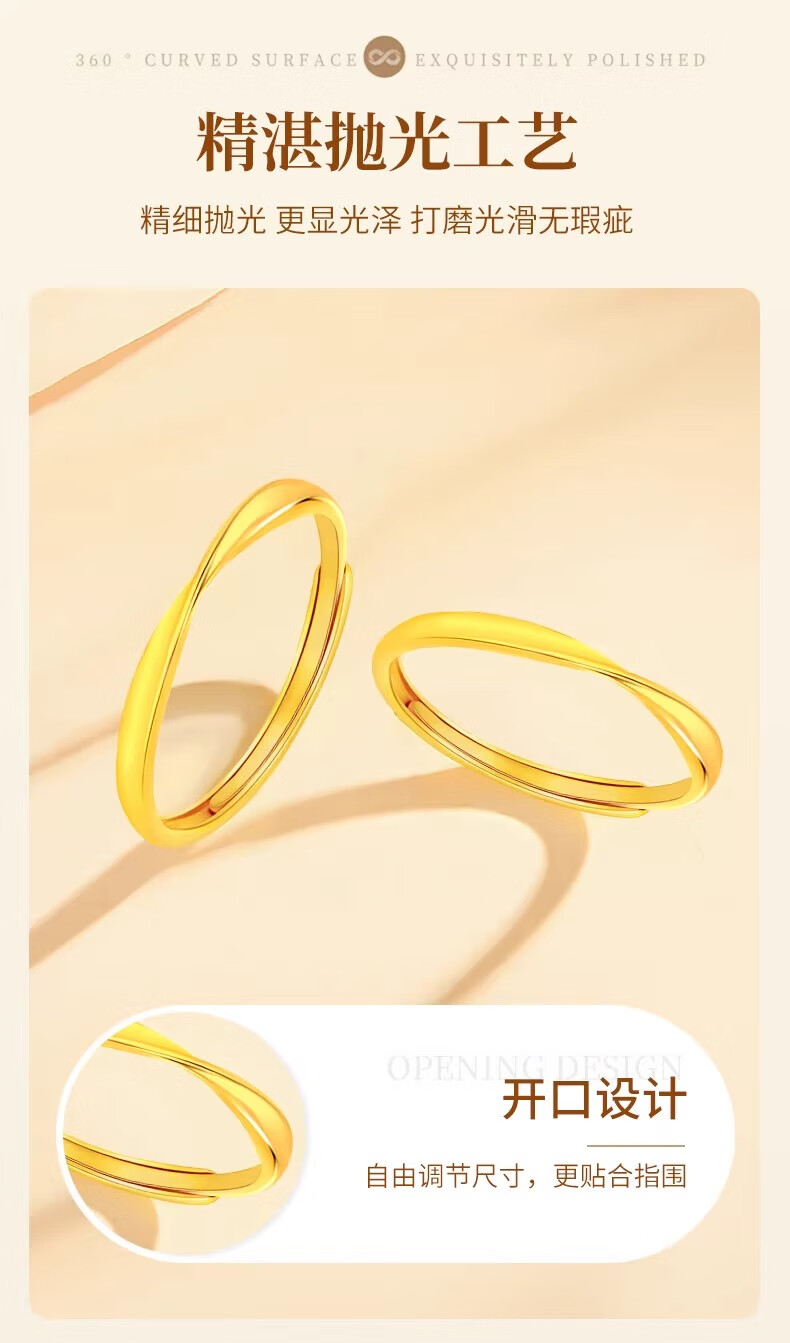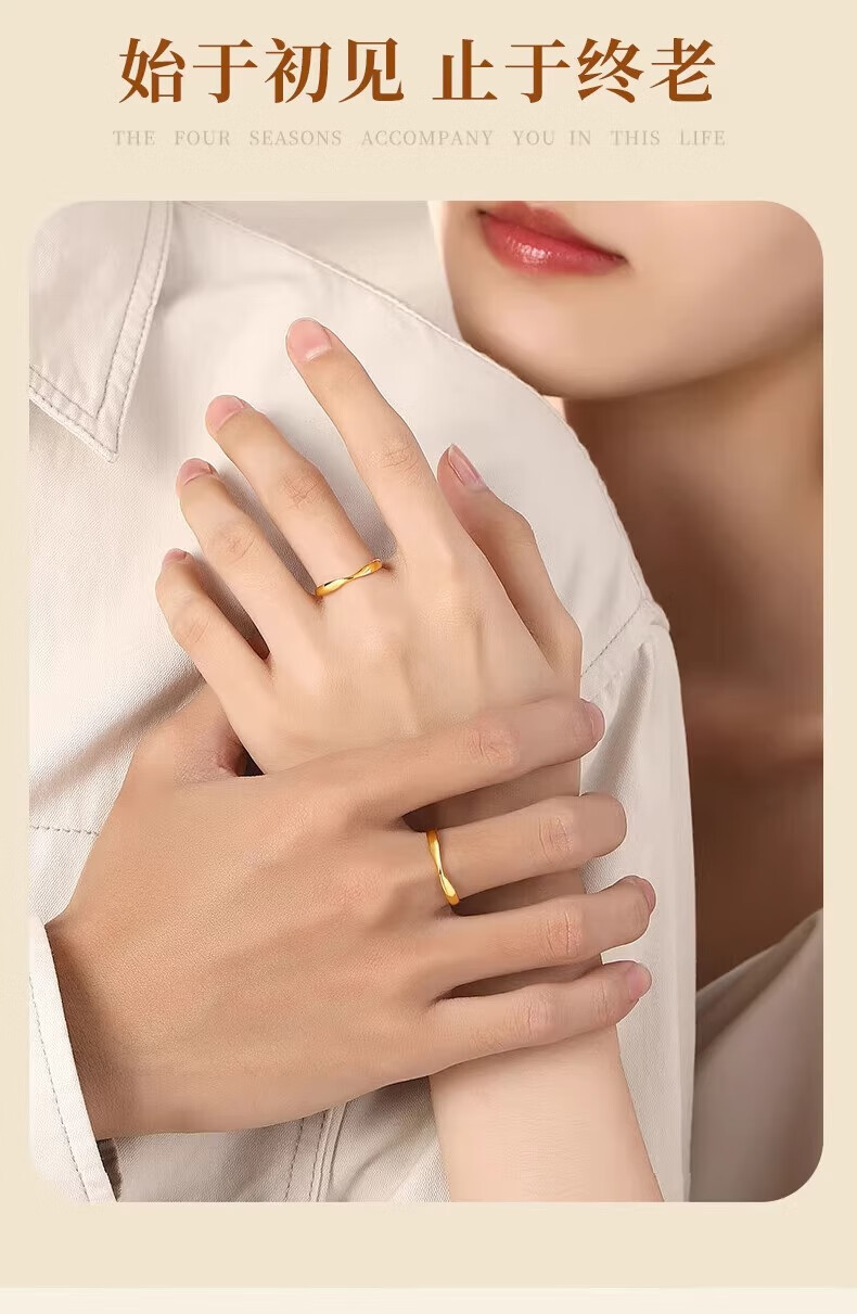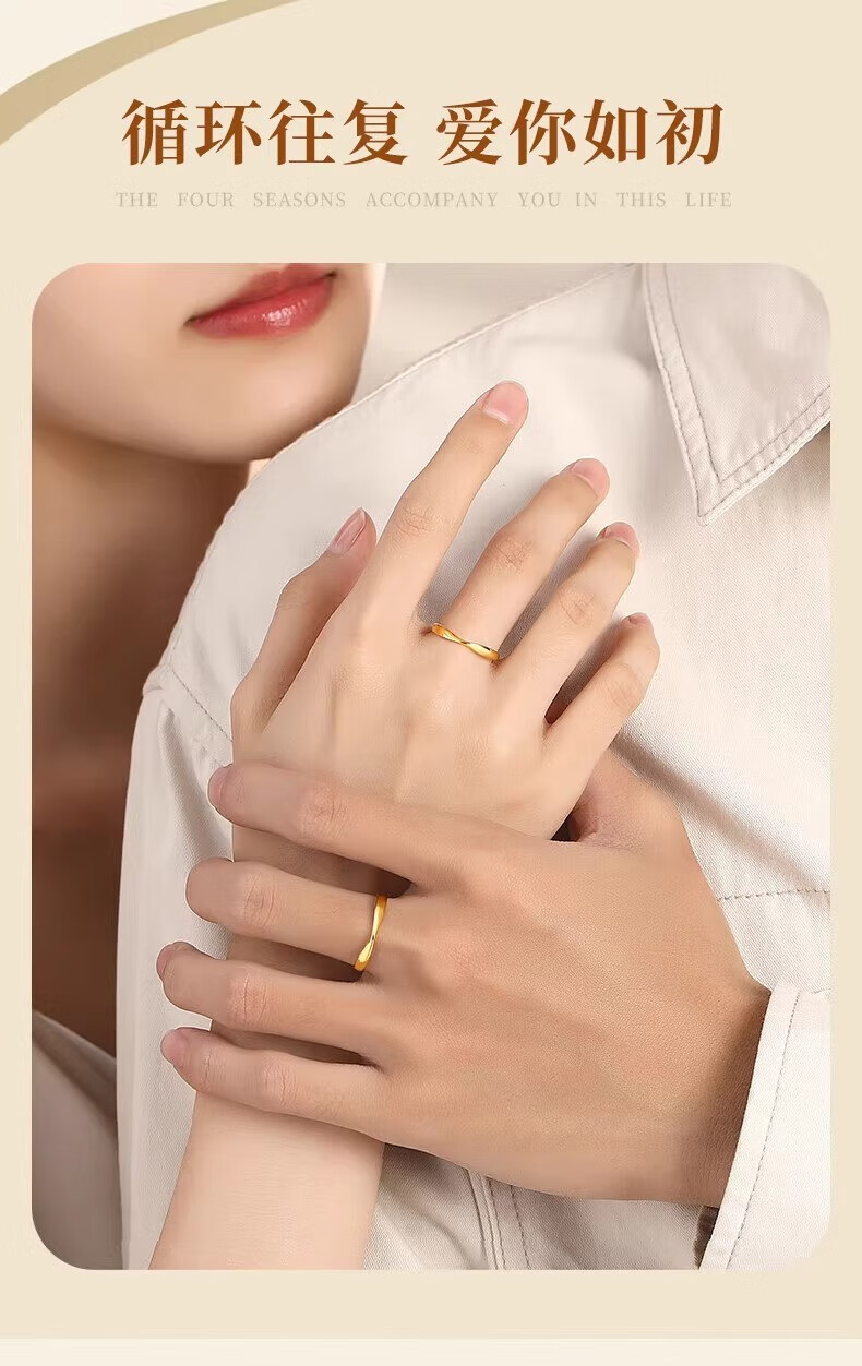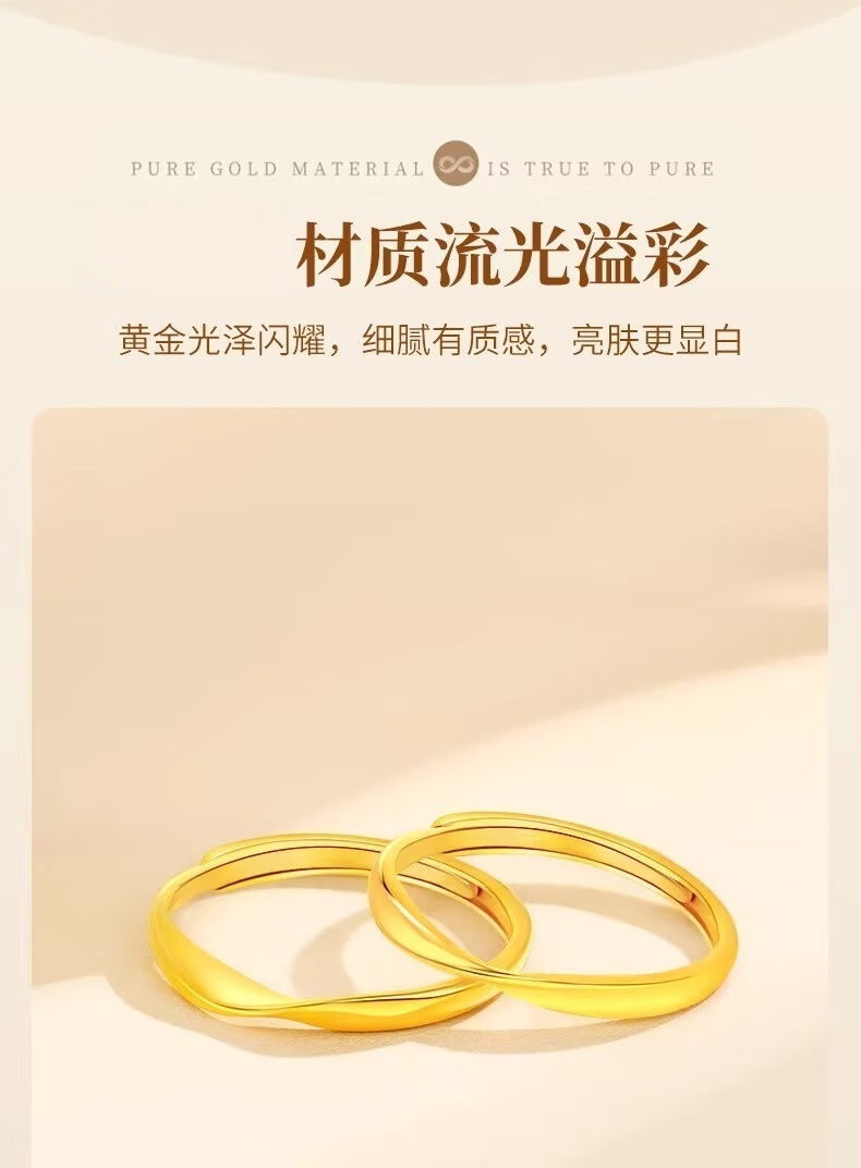 Erli pure gold 999 Möbius ring ring, light luxury, simple glossy plain ring gold ring, male and female couple ring, Möbius ring, about 0.6g, opening can be