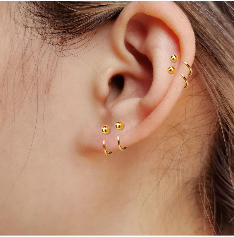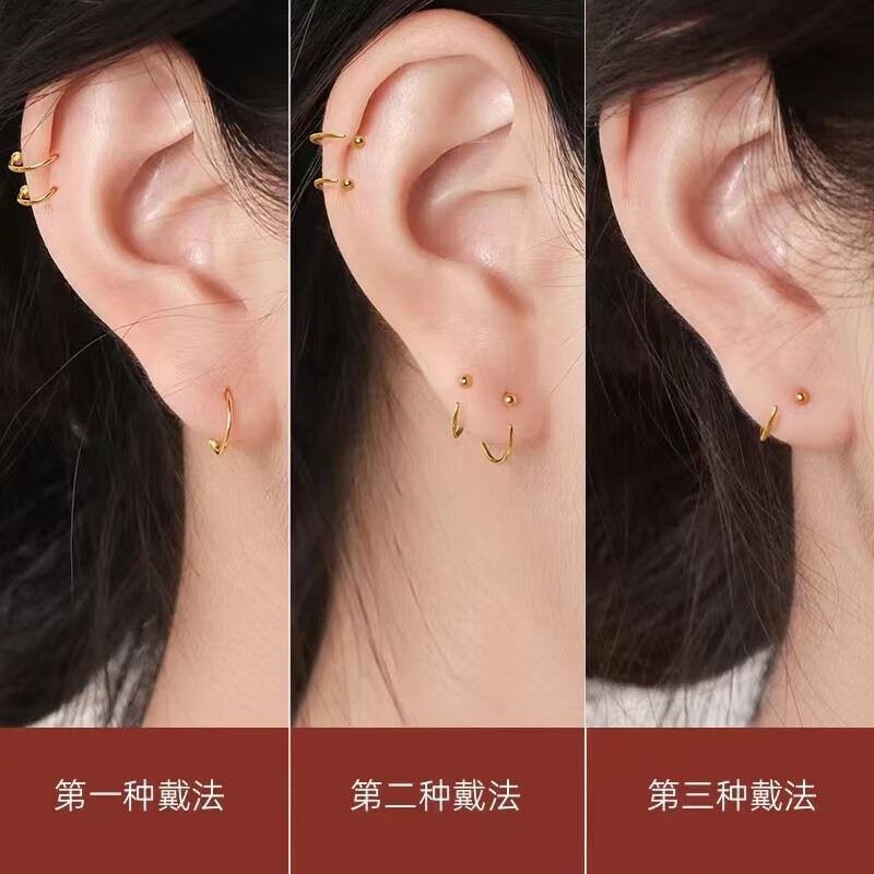 Junkiss Pure Gold Earrings Earrings Pure Gold 999 Round Plain Rings Fashionable Women's Earrings Adzuki Bean Earrings for Ear Holes, Thickness 0.65mm, Inner Diameter 5mm, Approximately 0.24g (single