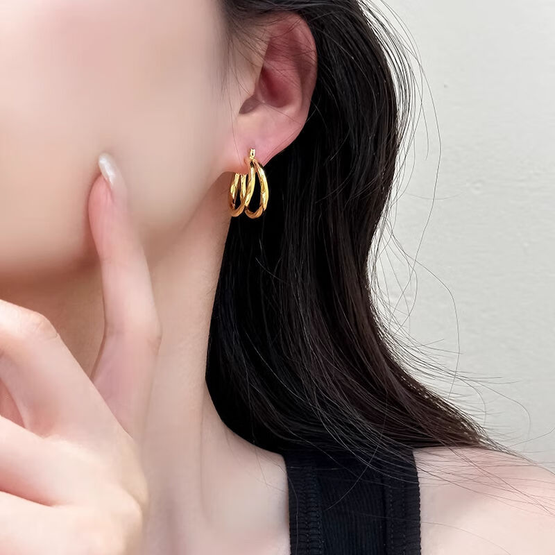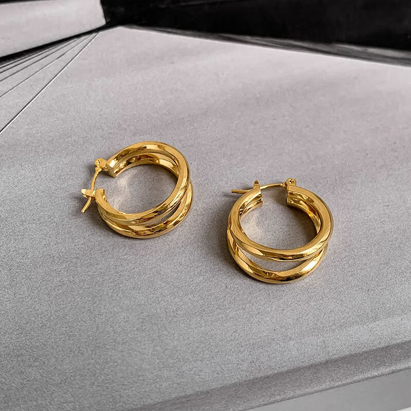 Erli 18K gold double-layer metal hoop earrings for women 2024 new color gold gold color temperament ear buckle earrings ins gold color