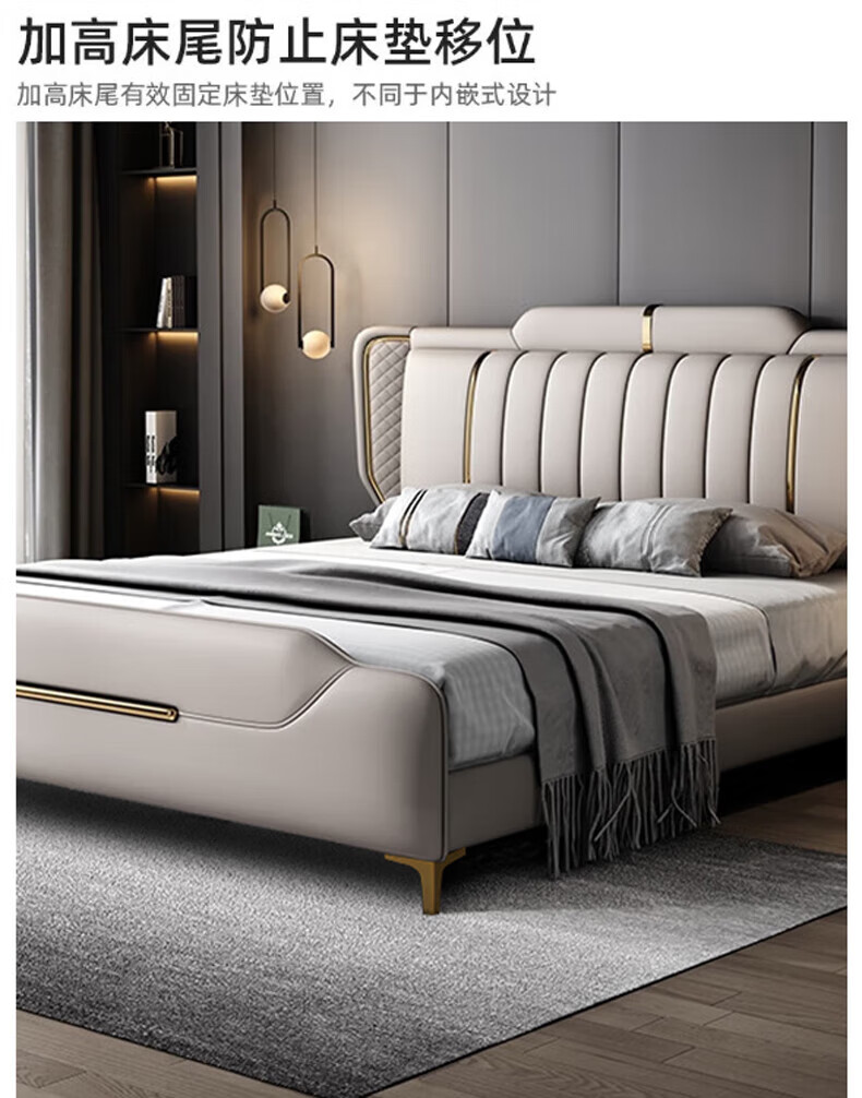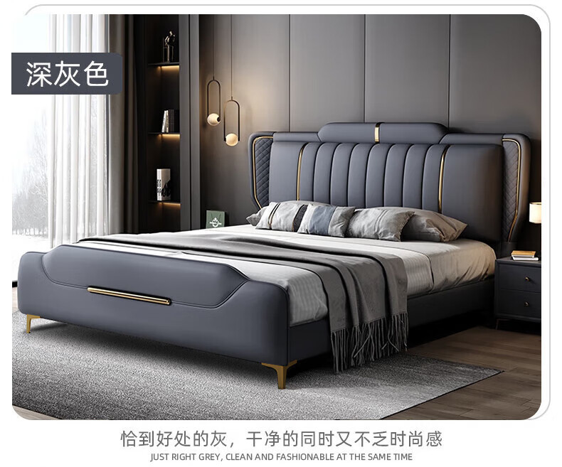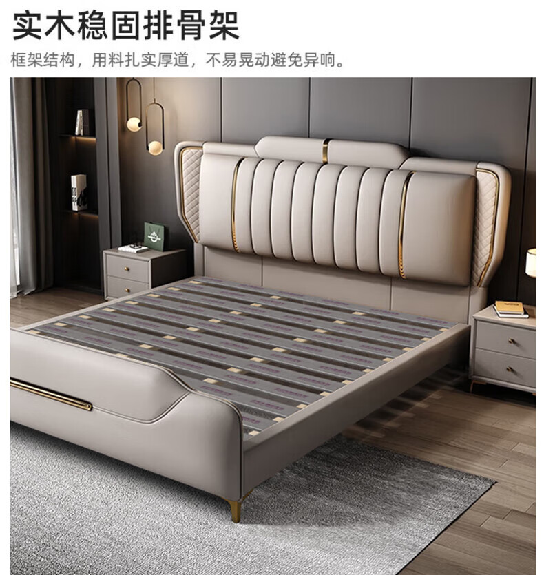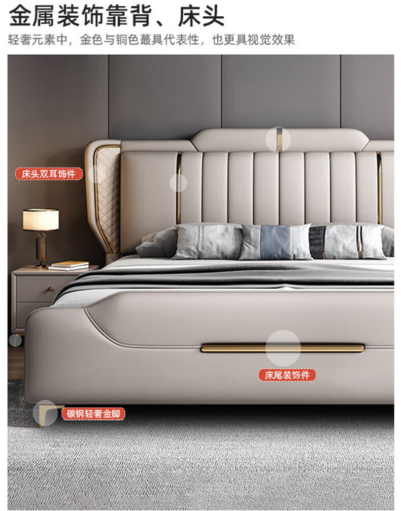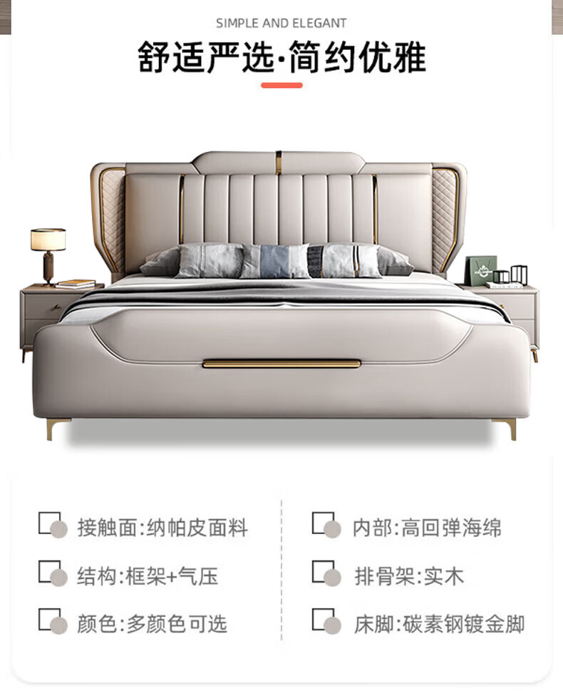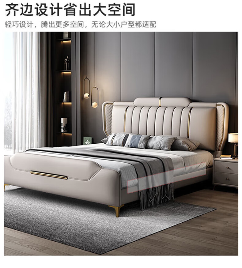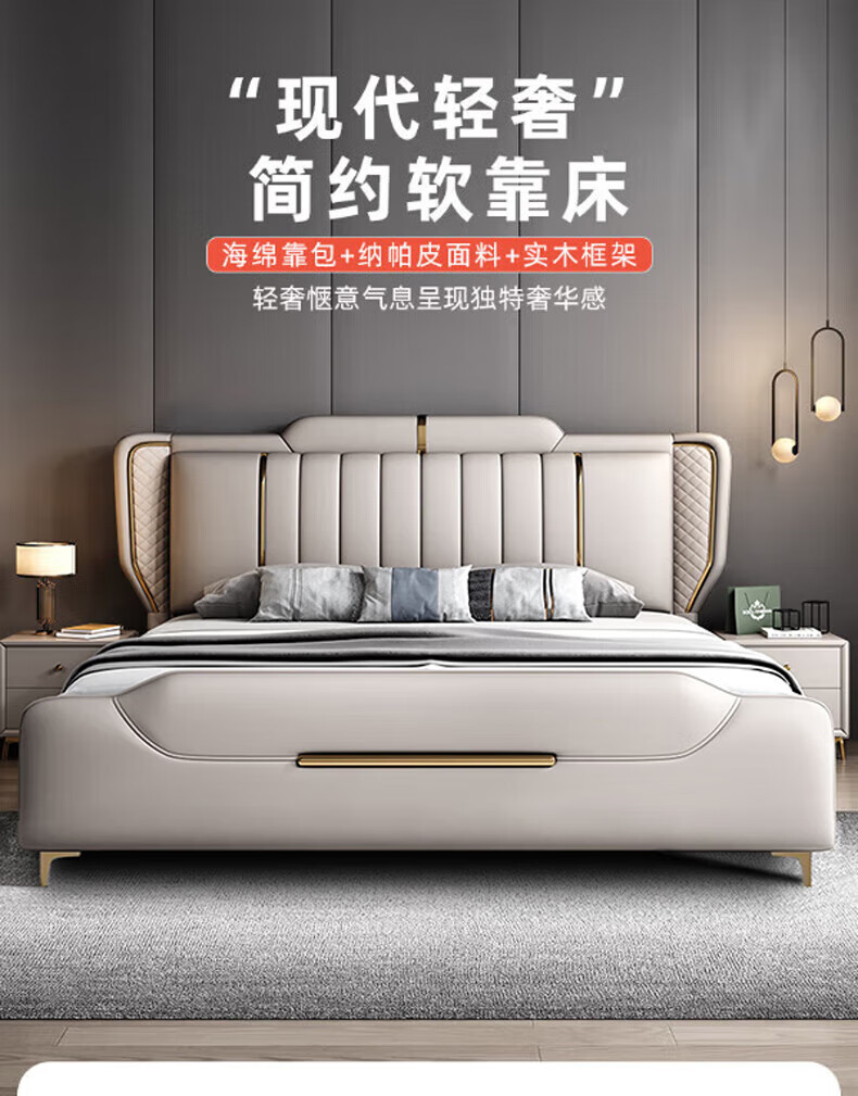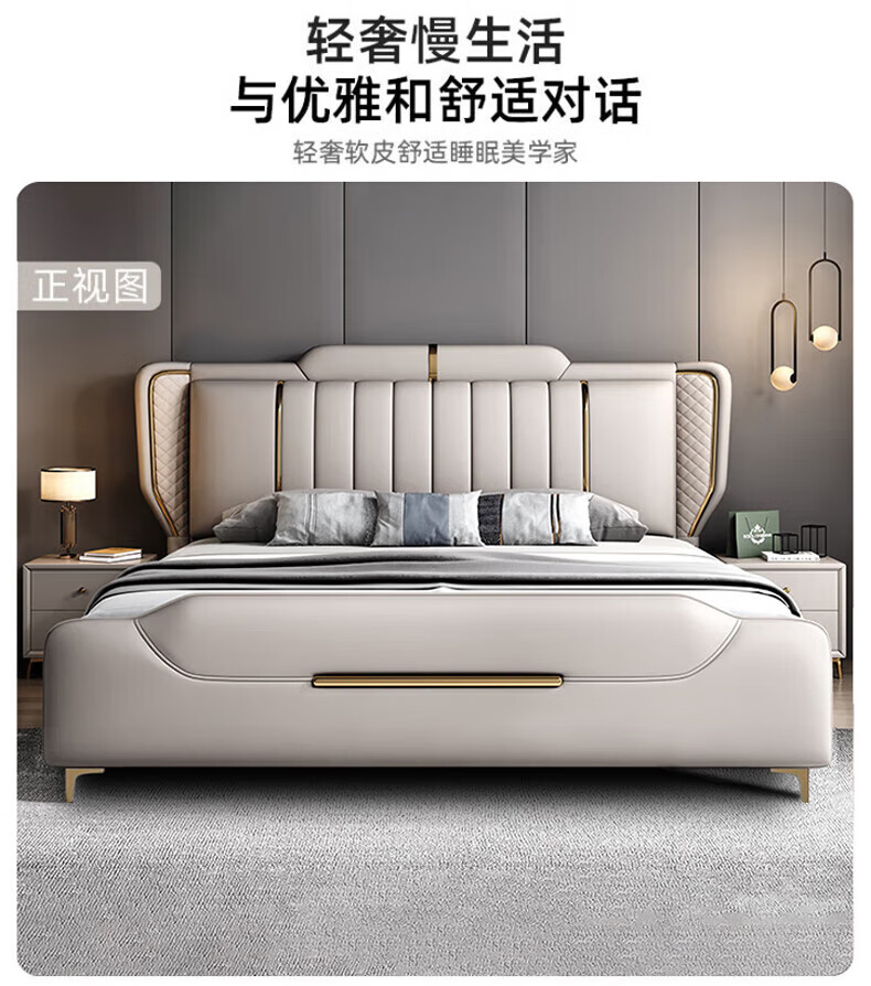 Leather bed modern and simple new style wedding bed 1.5m 1.8m double master bedroom king bed Italian light luxury leather bed flagship version leather bed delivered to home 1800mm*2000mm frame structure