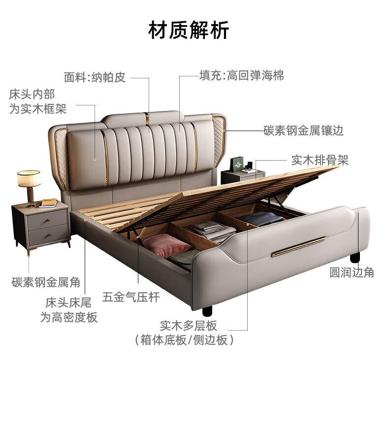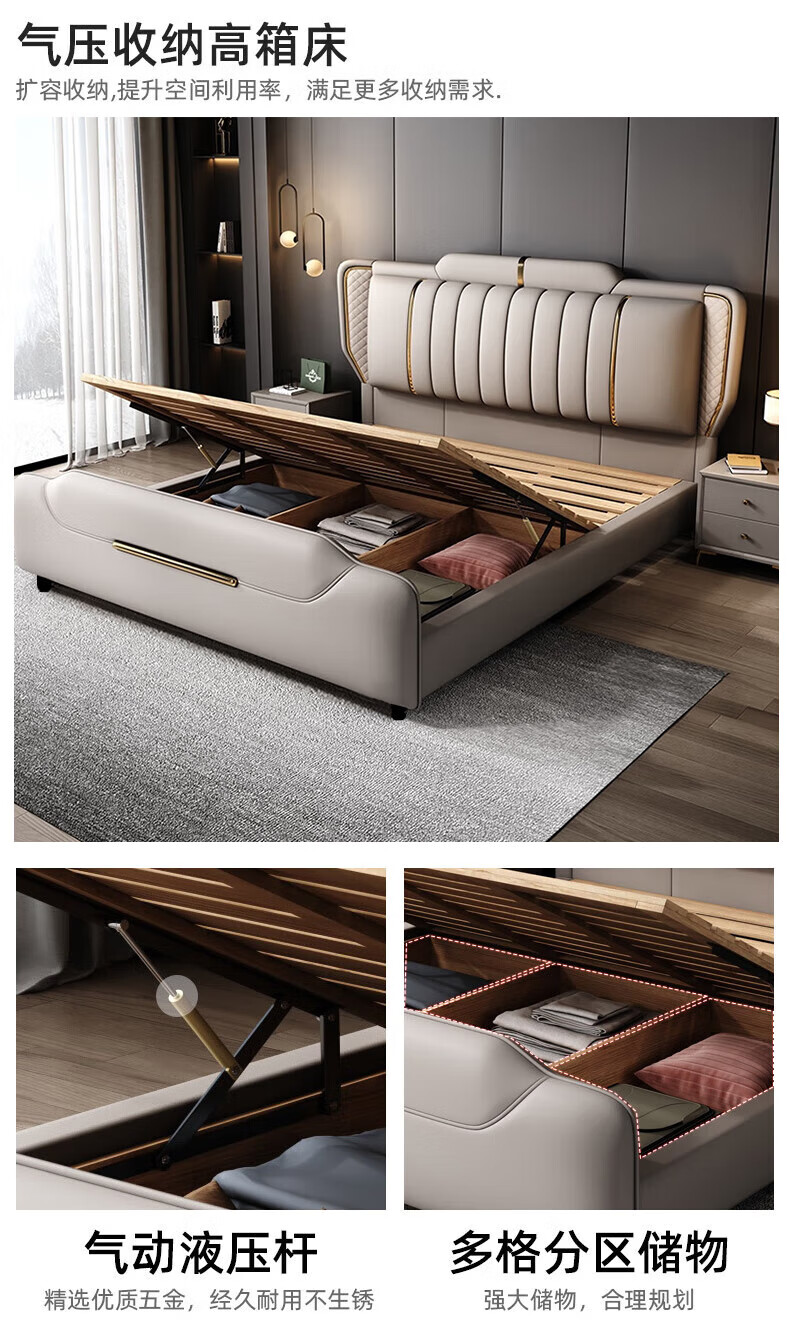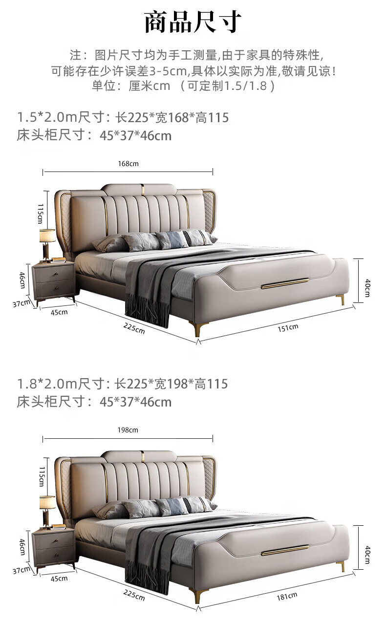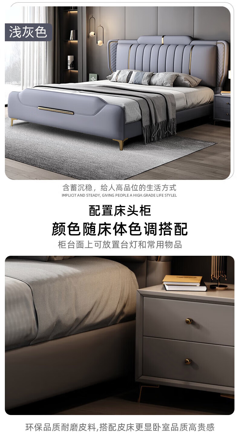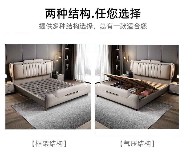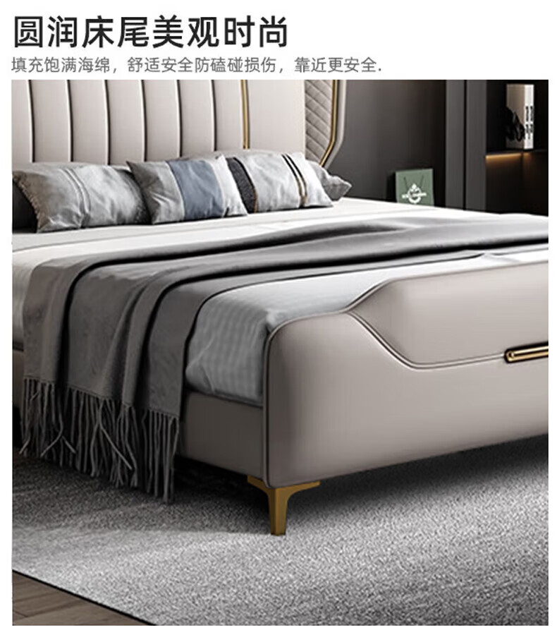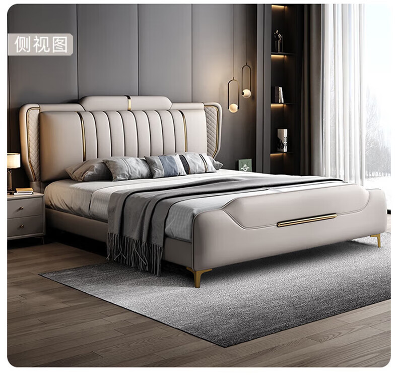 Leather bed modern and simple new style wedding bed 1.5m 1.8m double master bedroom king bed Italian light luxury leather bed flagship version leather bed delivered to home 1800mm*2000mm frame structure