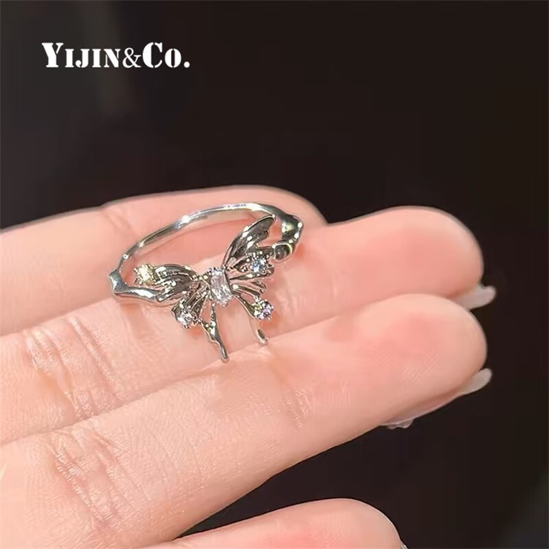 Yijin butterfly ring women's S925 sterling silver diamond zircon open ring niche light luxury simple fashion high-end ring gift butterfly ring adjustable