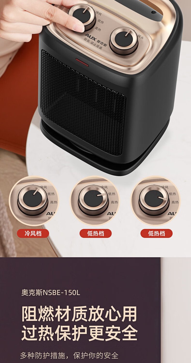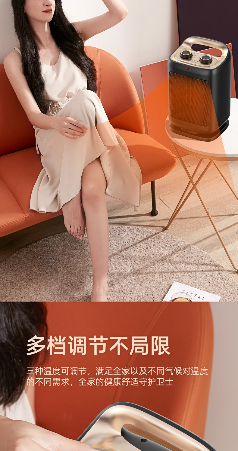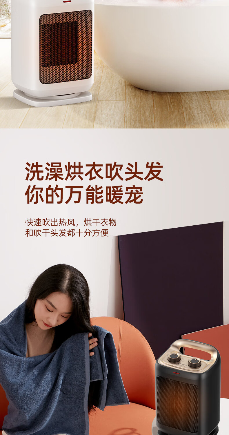 Oaks heater electric heater home bathroom small sun power-saving heater energy-saving heater mini office white + gold shaking head