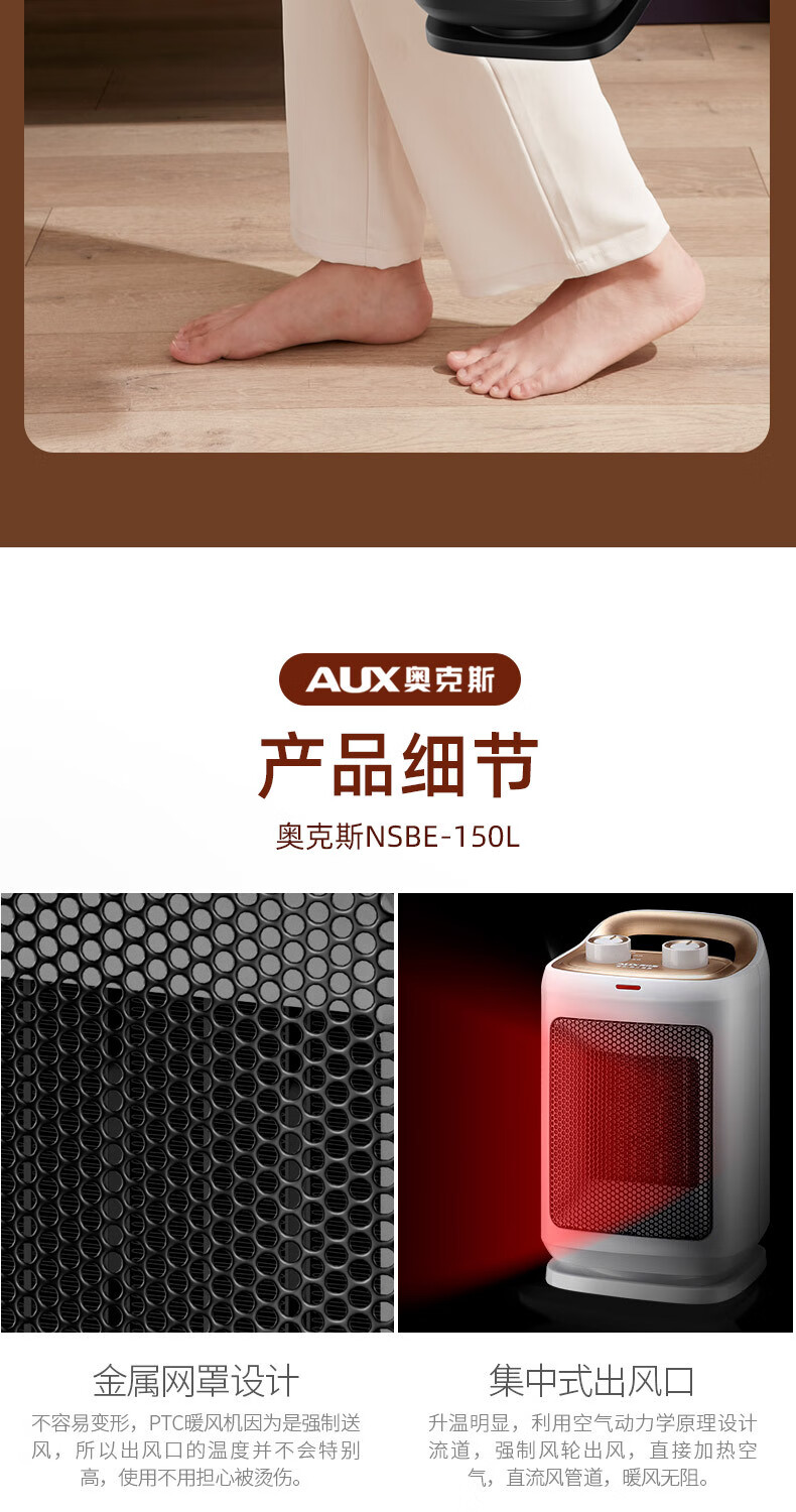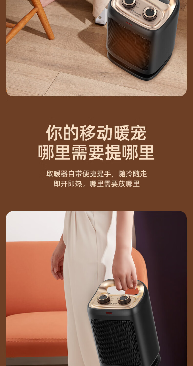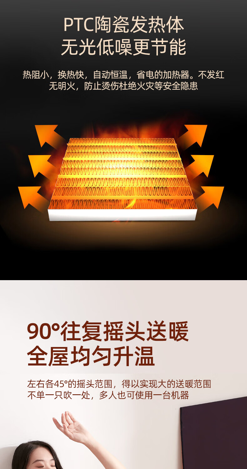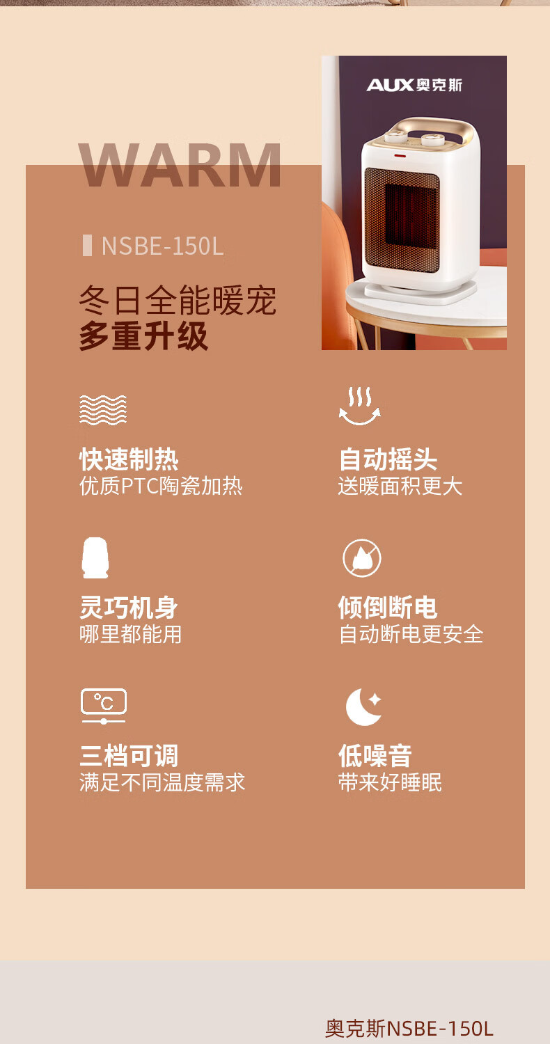 Oaks heater electric heater home bathroom small sun power-saving heater energy-saving heater mini office white + gold shaking head