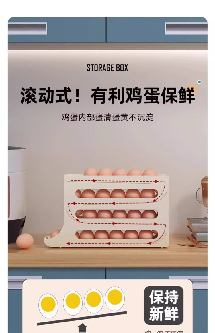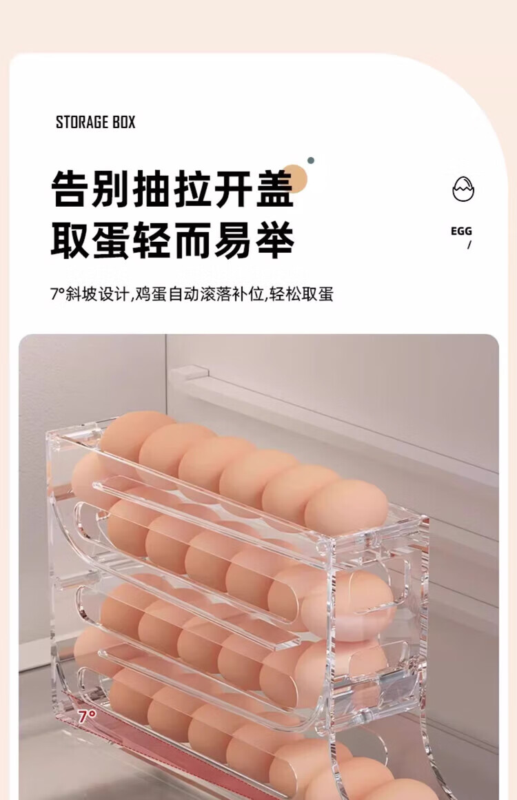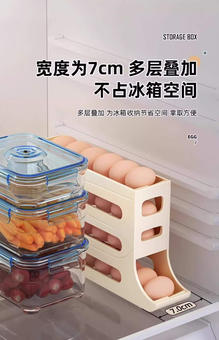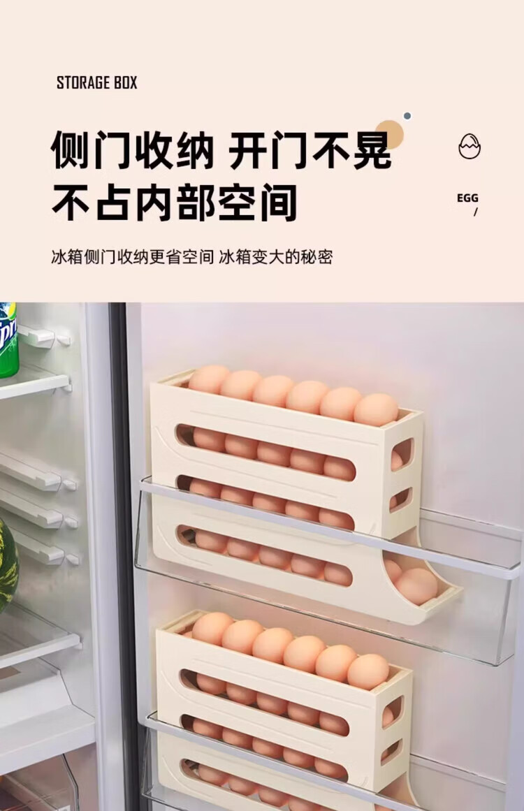Tanshiguang egg storage box refrigerator side door storage box automatic rolling egg storage box slide-type egg tray egg crisper milk yellow automatic rolling down