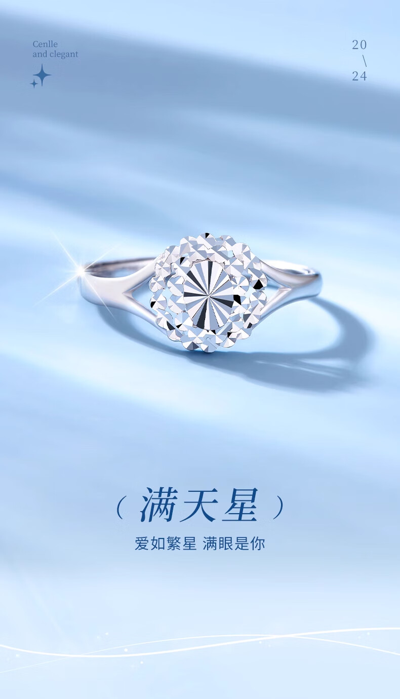 CHINA GOLD Gypsophila open ring pt950 platinum new women's ring Valentine's Day birthday gift for girlfriend and wife Gypsophila platinum ring about 2.3g