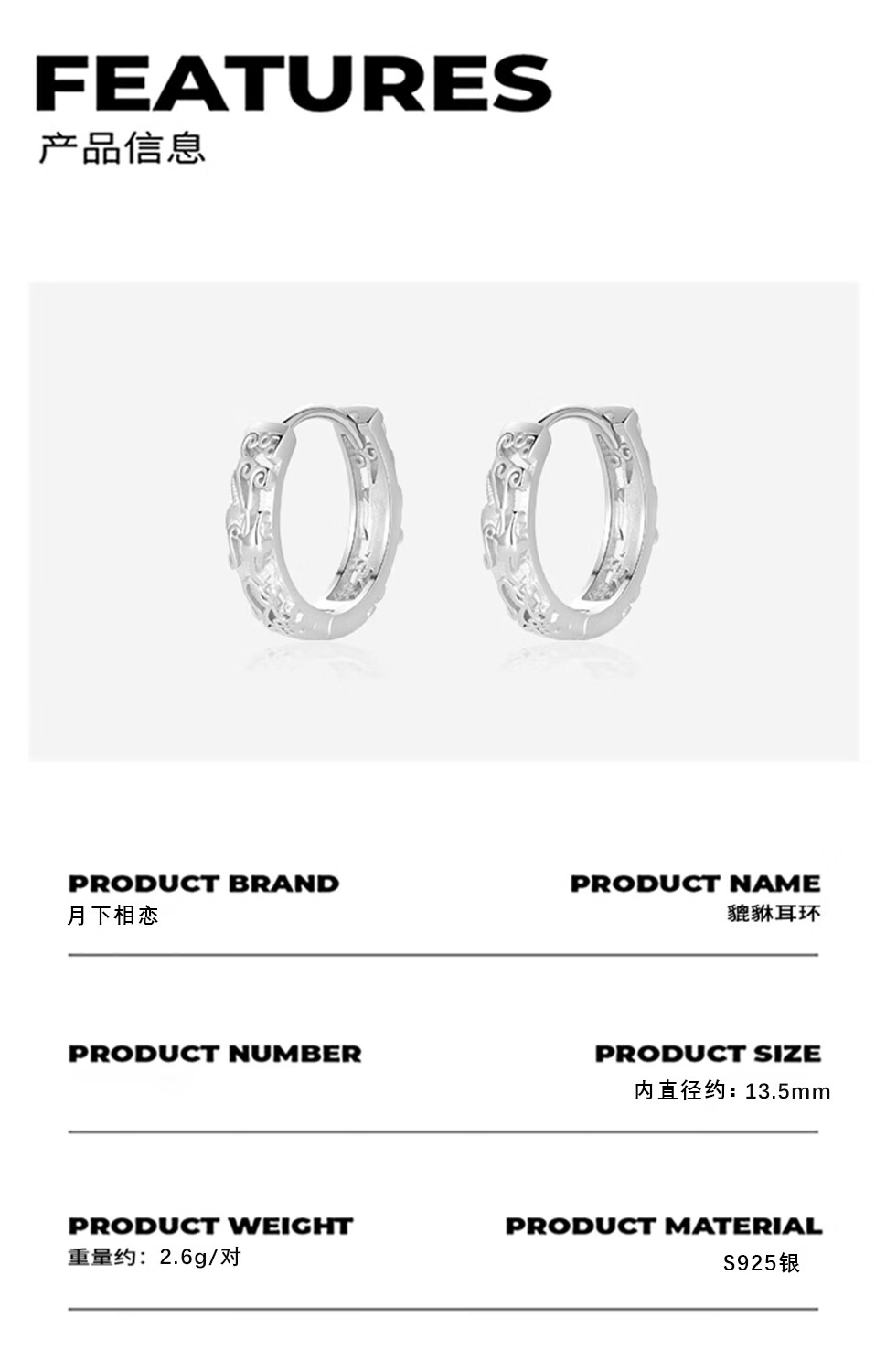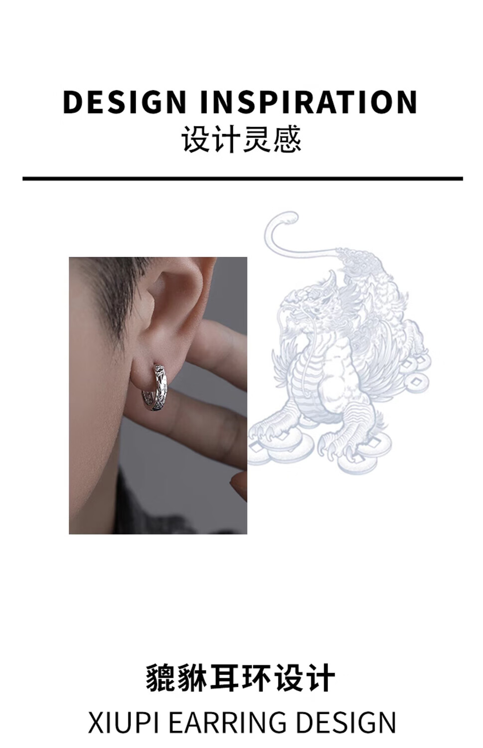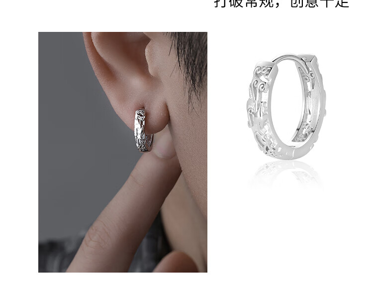 Falling in love under the moon S925 silver men's earrings handsome high-end Pixiu earrings men's niche high earrings as a birthday gift for boyfriend S925 silver Pixiu earrings silver single