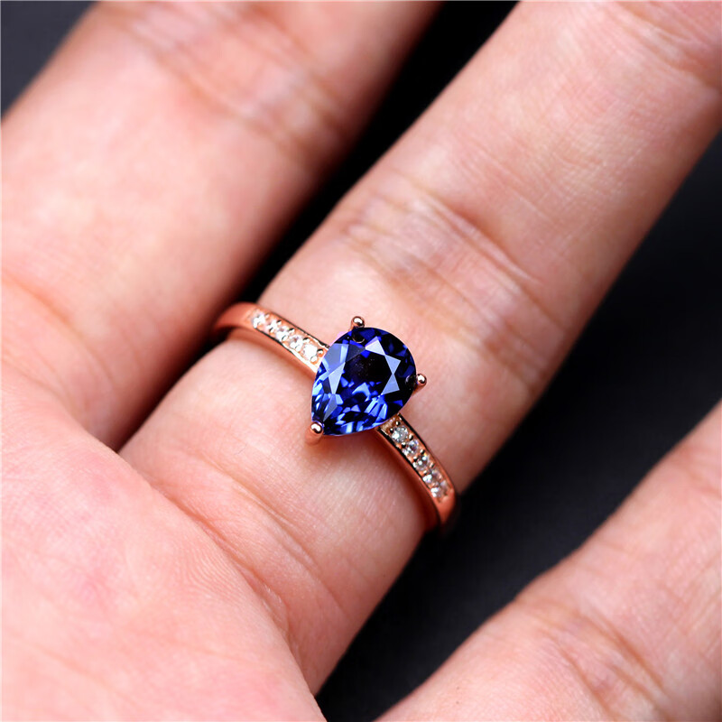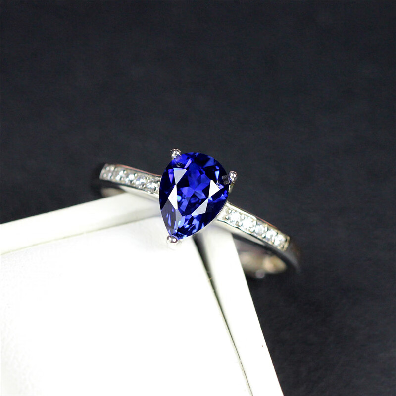 Erli drop-shaped sapphire ring women's 925 sterling silver ring tanzanite colored gemstone Japanese and Korean opening adjustable white gold