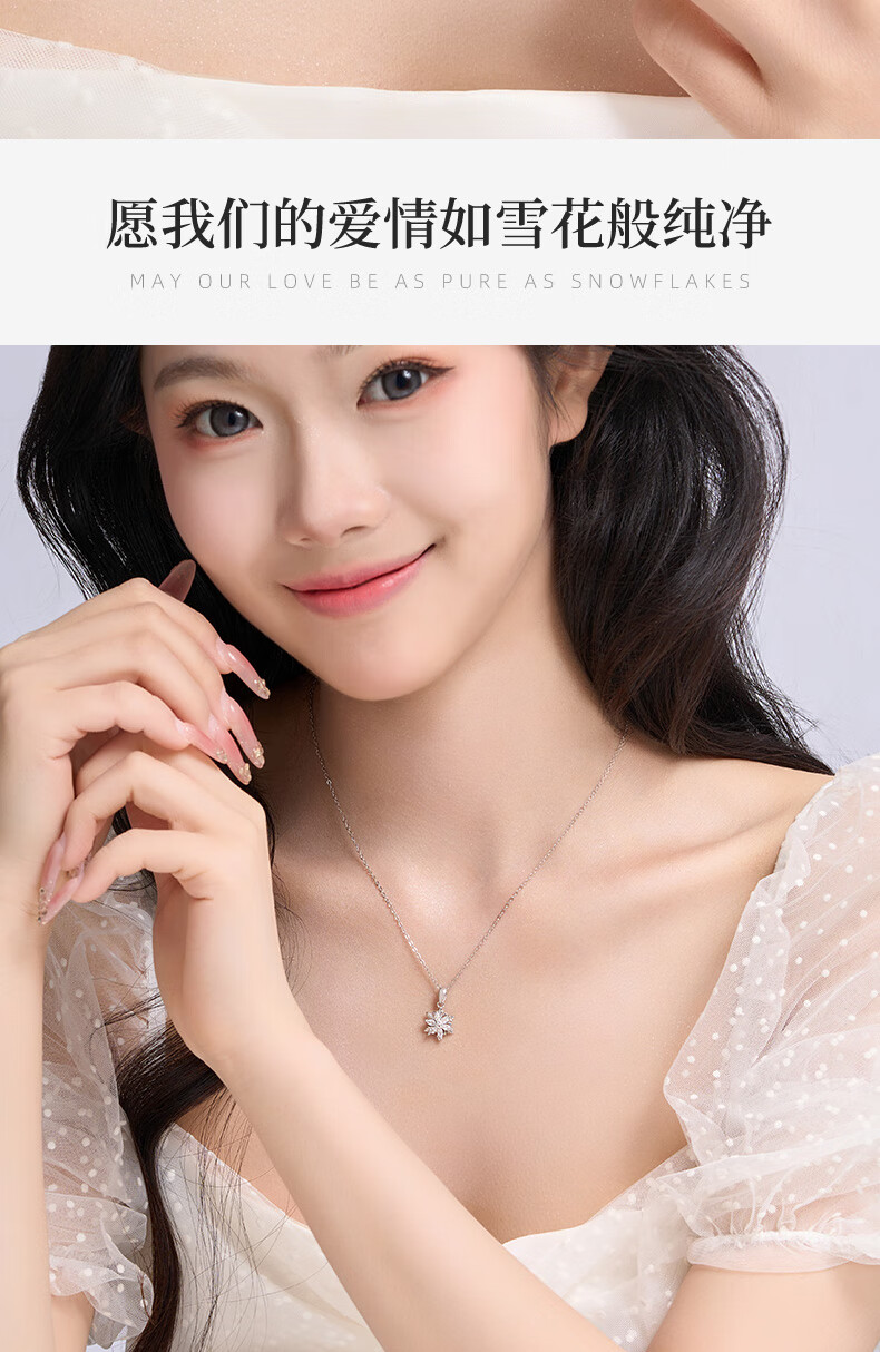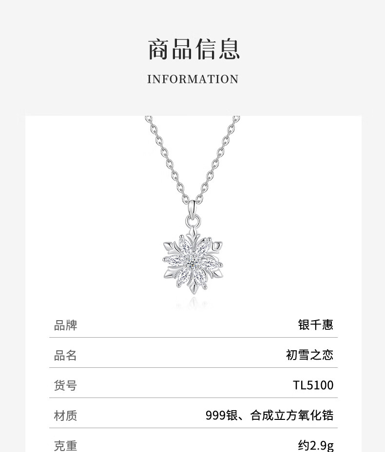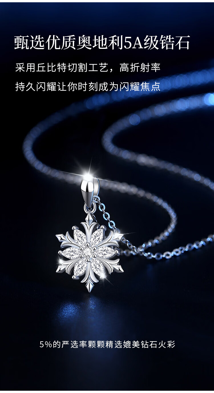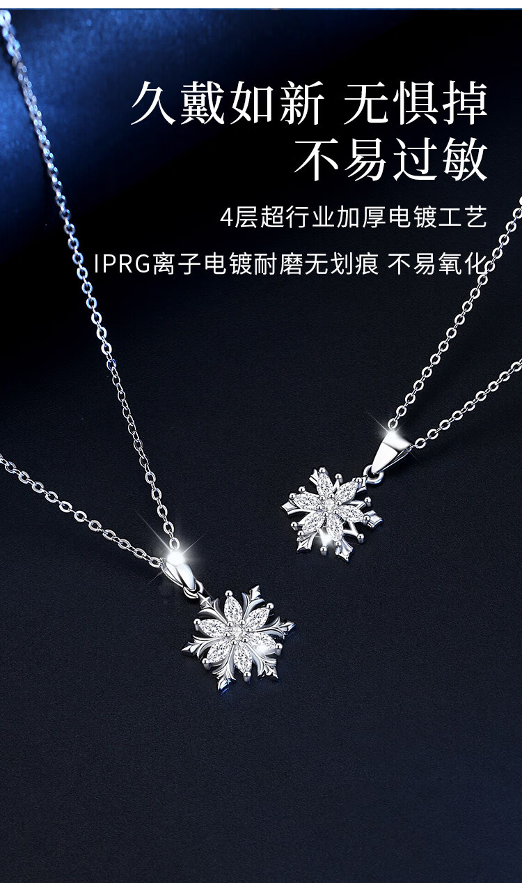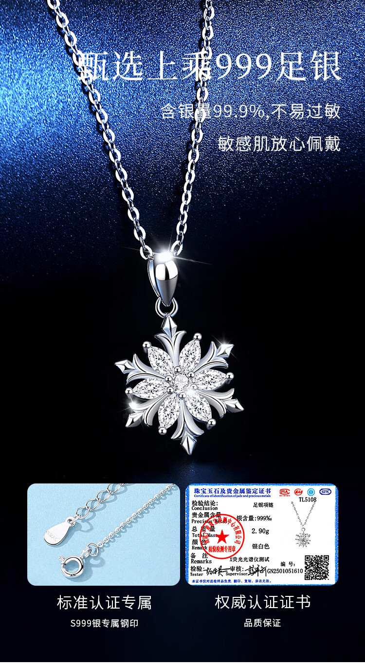 Ginqianhui 999 sterling silver snowflake necklace for women, high-end light luxury pendant, fashionable birthday gift for girlfriend and wife, First Snow Love Necklace/snowflake rotatable+seven warehouse delivery/next day delivery, Valentine's Day girl gift/rose gift box/999 pure silver jewelry certificate