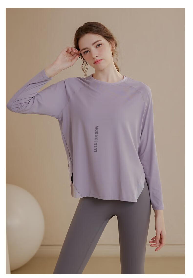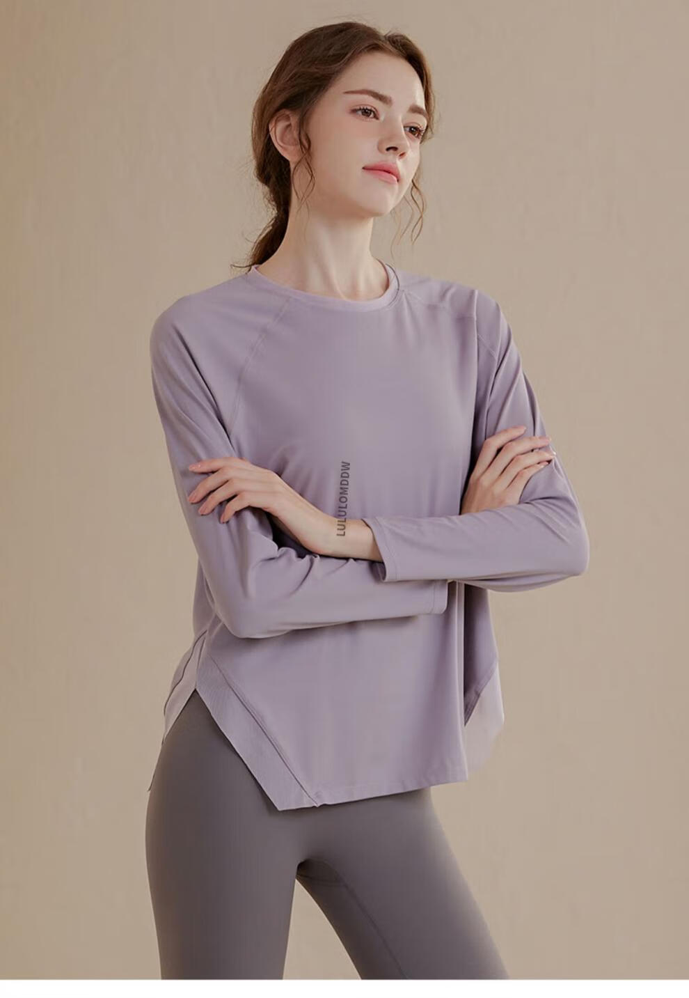 LULULOMDDW yoga wear women's quick-drying long-sleeved sports T-shirt running training large size Pilates cover-up autumn and winter fitness tops for women black XL recommended 125-140Jin Jin equals 0.5 kg