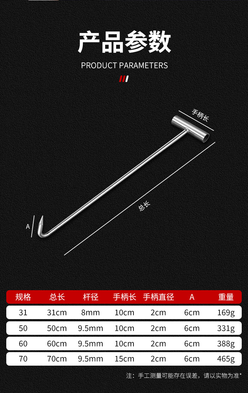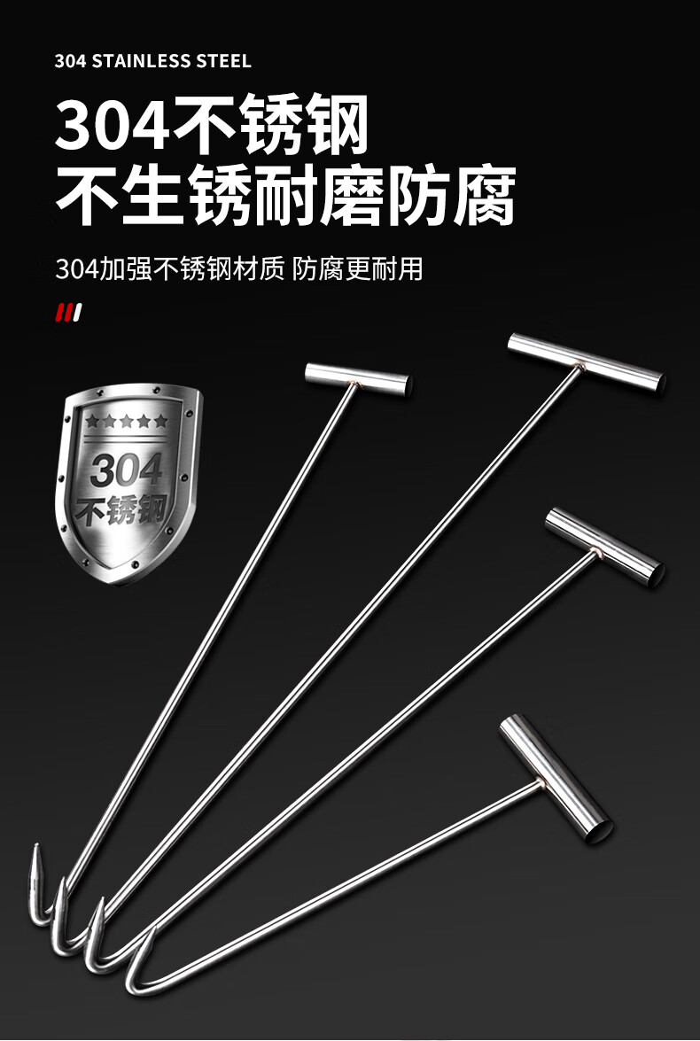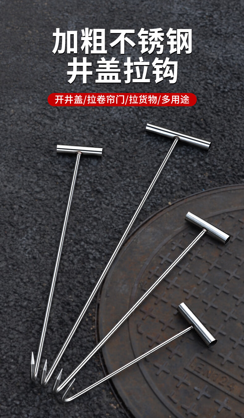 Meike (MYTEC) manual Latin hook to open sewer cover hook, special hook for rolling shutter door, stainless steel manhole cover hook, extended T-shaped hook, 31 cm manhole cover hook, 8 mm thick