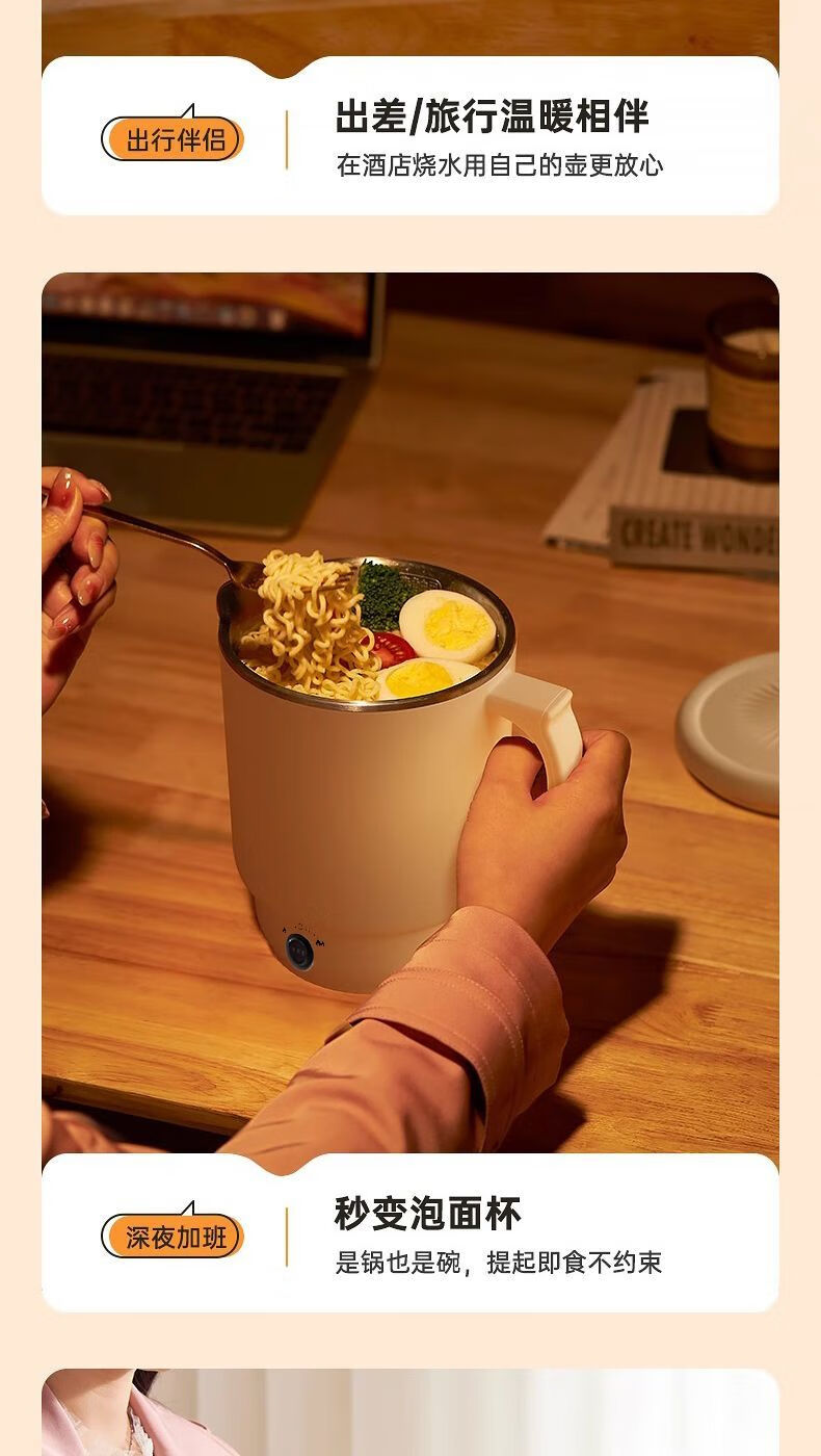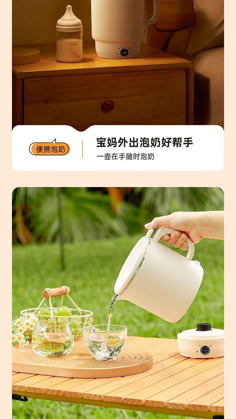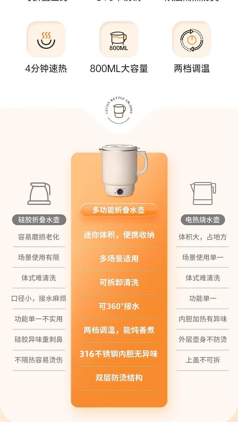 AIKAISUN German Folding Kettle Travel Portable Hot Water Kettle Insulated All-in-One Health Pot Intelligent Boiling Cup Small Instant Noodle Pot 800ML 304L Integrated Inner Tank Ultra-Thick Waterproof Leakage Can Be Taken on Airplanes and High-Speed Rails