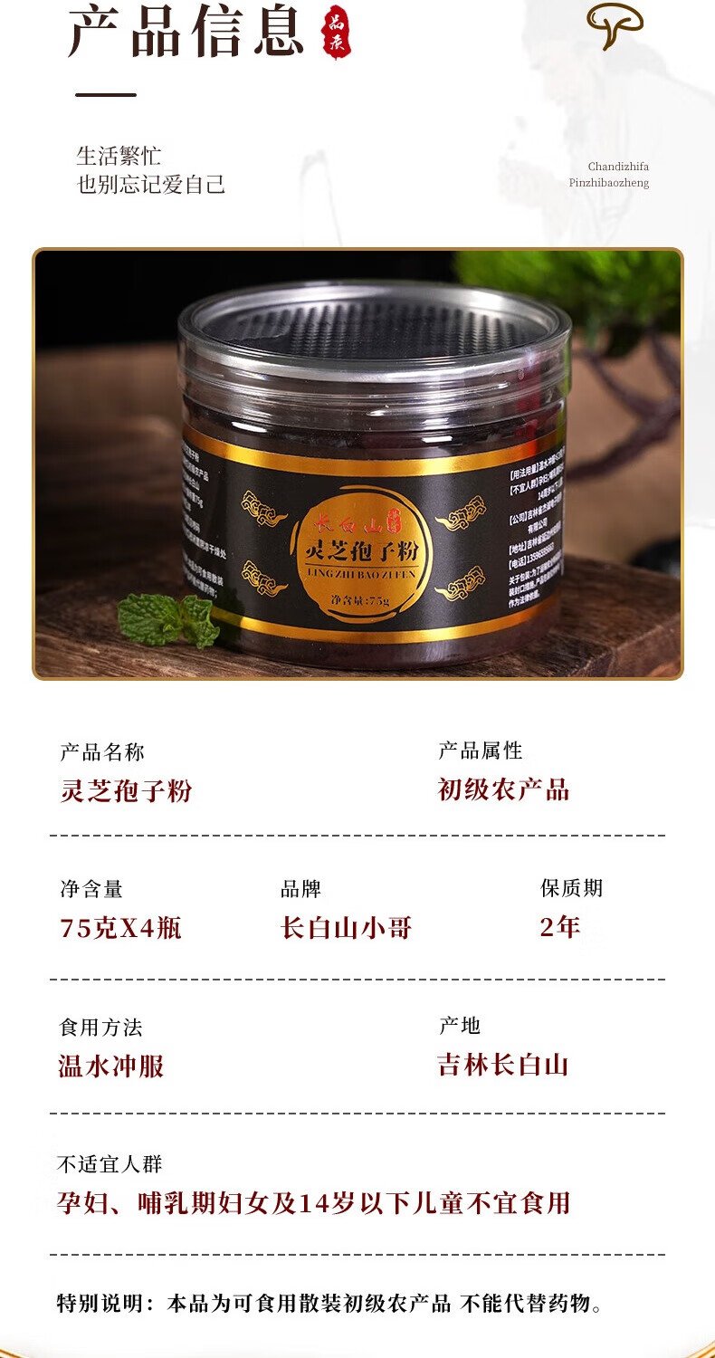 Changbai Mountain Brother Changbai Mountain specialty red Ganoderma lucidum Ganoderma spore powder is rich in spore oil 75g*4 cans gift box gift box 75g*4 cans